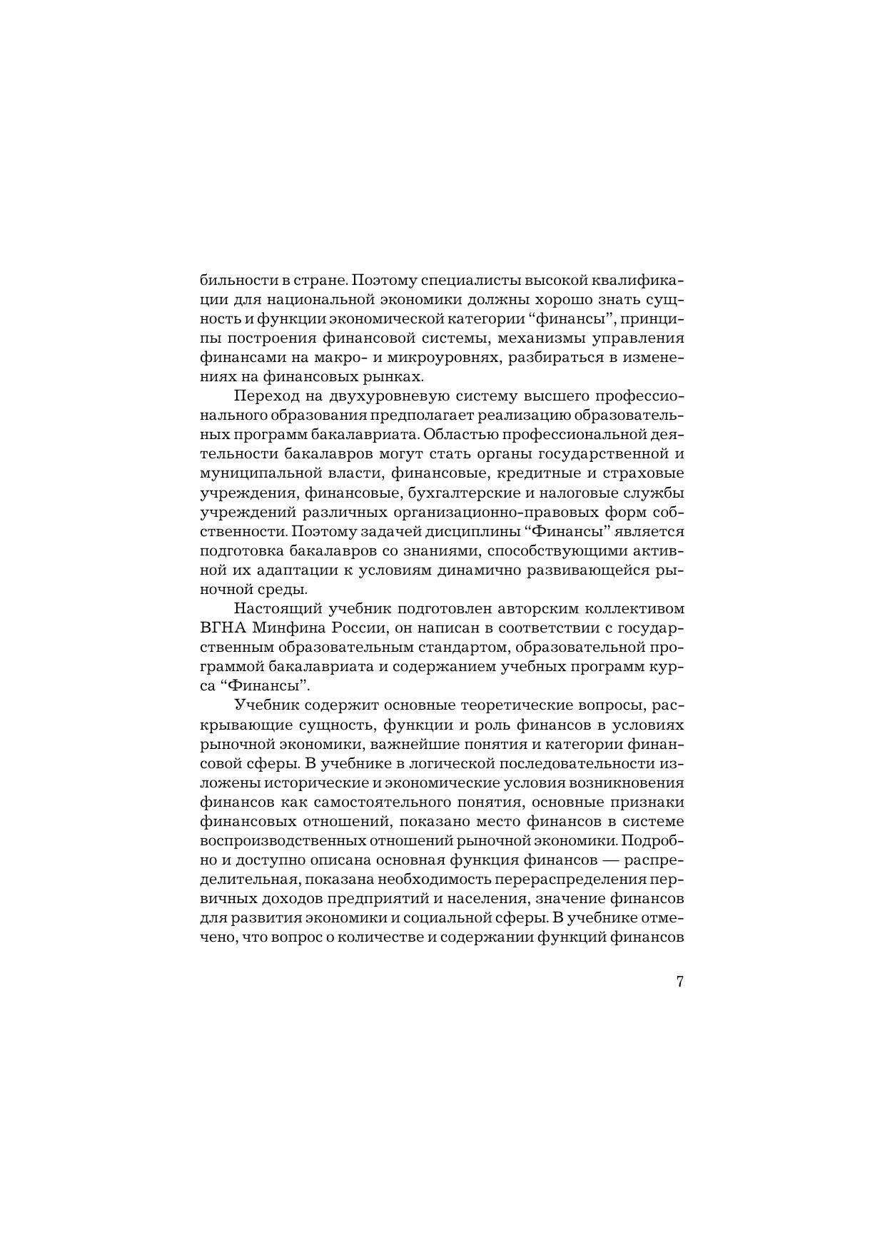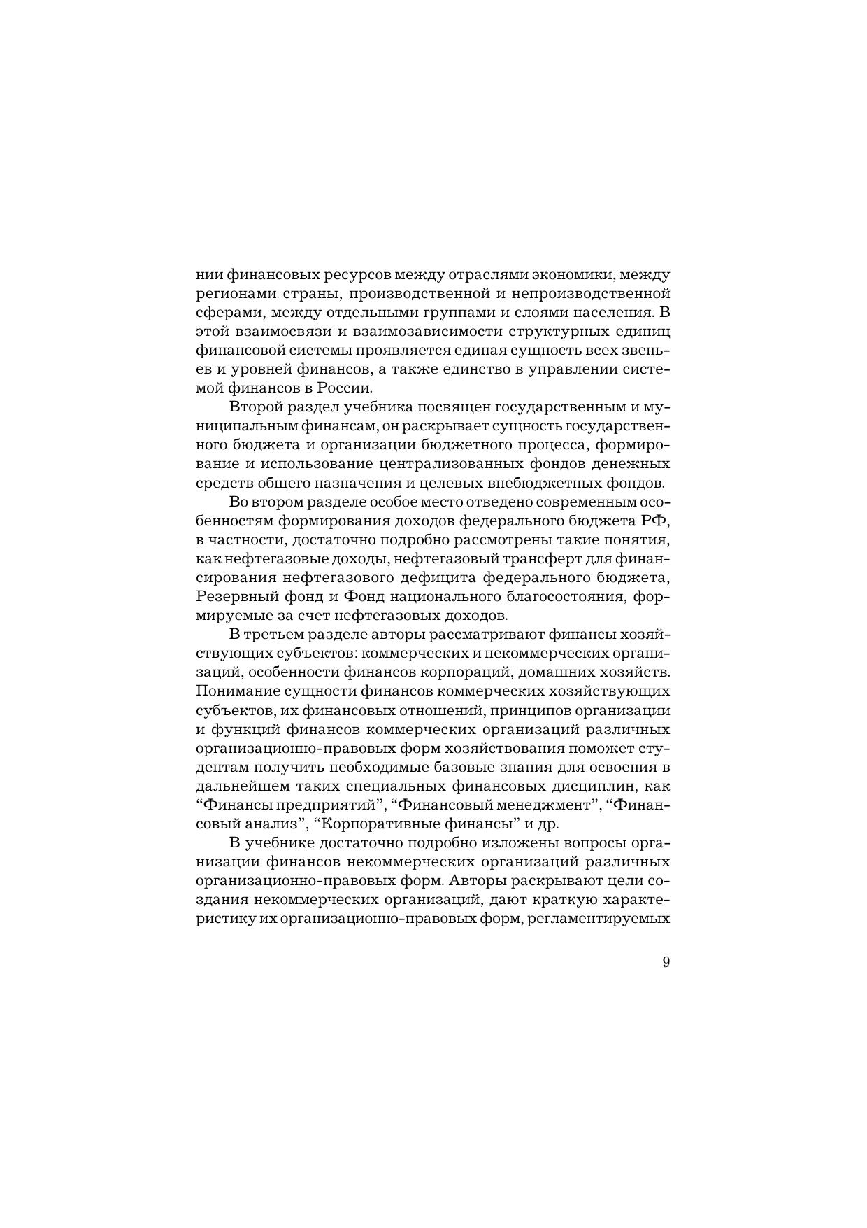 В предлагаемом учебнике рассмотрены темы, позволяющие освоить основные концепции финансовой науки, изучить особенности формирования и функционирования финансовой системы, финансового механизма, финансовой политики, а также роль государственных и муниципальных финансов в процессах социально-экономического развития, понять специфику финансов хозяйствующих субъектов и домохозяйств, определить место финансового рынка как инфраструктурной составляющей финансовой системы. Для студентов бакалавриата, обучающихся по направлению подготовки "Экономика" профилей "Финансы и кредит", "Бухгалтерский учет, анализ и аудит", "Налоги и налогообложение". Учебник можно использовать также в процессе переподготовки кадров и как реальную помощь в самообразовании специалистов, пришедших на финансовую работу из других областей и сфер деятельности. Гриф УМО