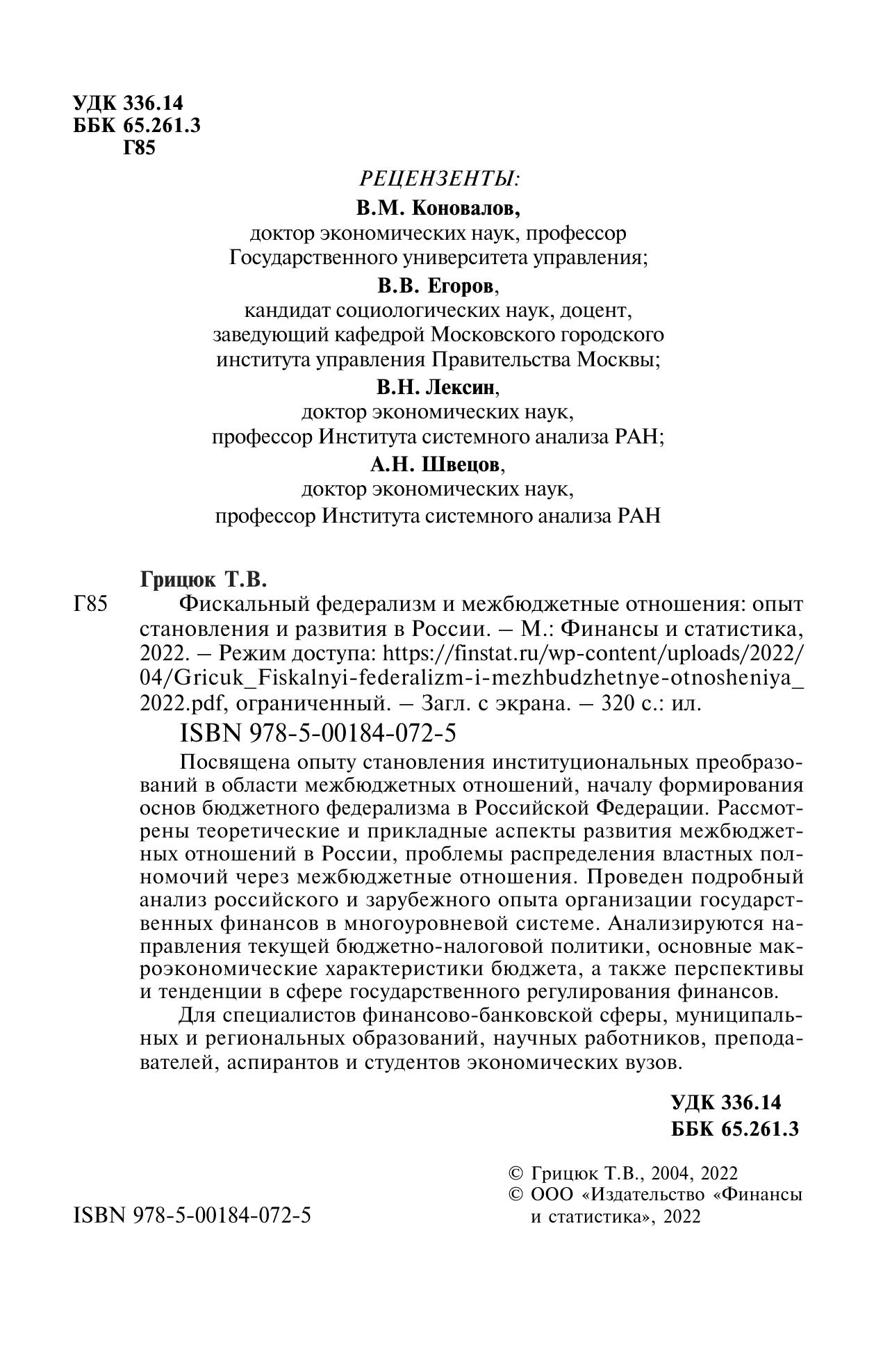 Фискальный федерализм и межбюджетные отношения: опыт становления и развития в России