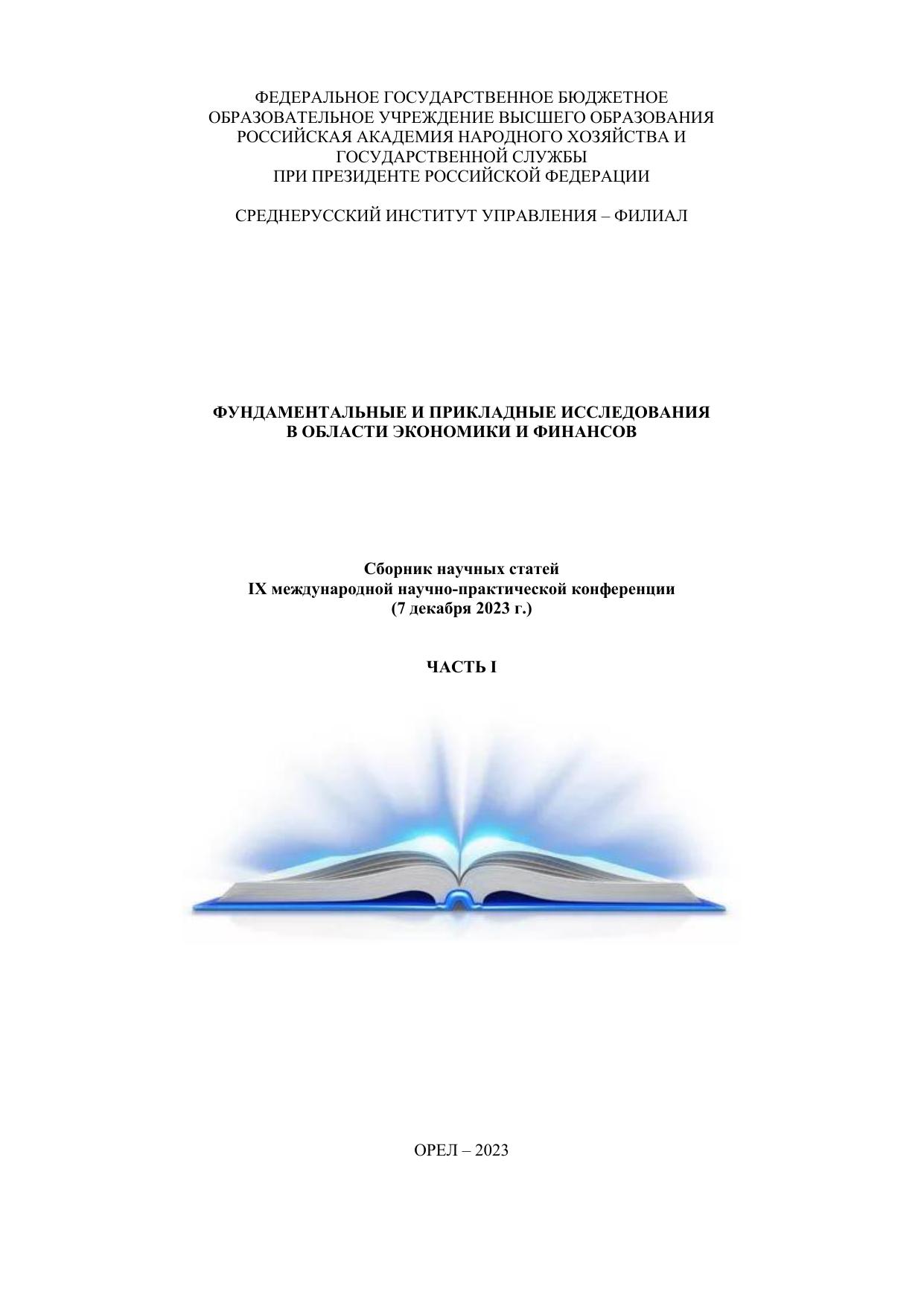 Фундаментальные и прикладные исследования в области экономики и финансов. Сборник научных статей IX международной научно-практической конференции. (7 декабря 2023 г.) Часть I