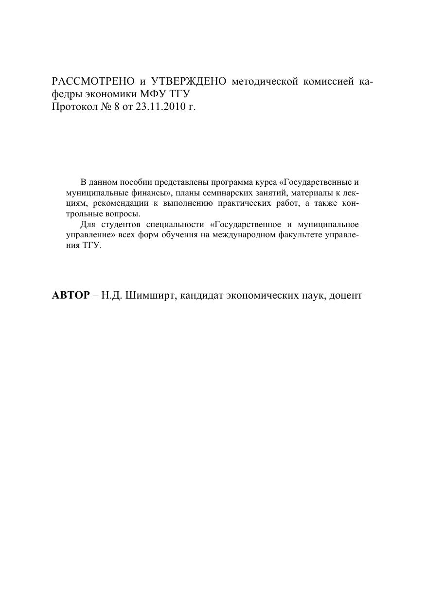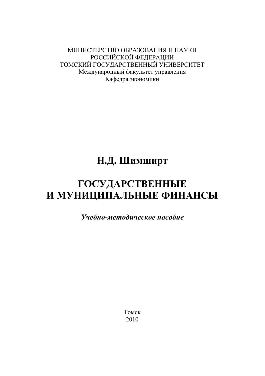 В данном пособии представлены программа курса «Государственные и муниципальные финансы», планы семинарских занятий, материалы к лекциям, рекомендации к выполнению практических работ, а также контрольные вопросы. Для студентов специальности «Государственное и муниципальное управление» всех форм обучения на международном факультете управления ТГУ.