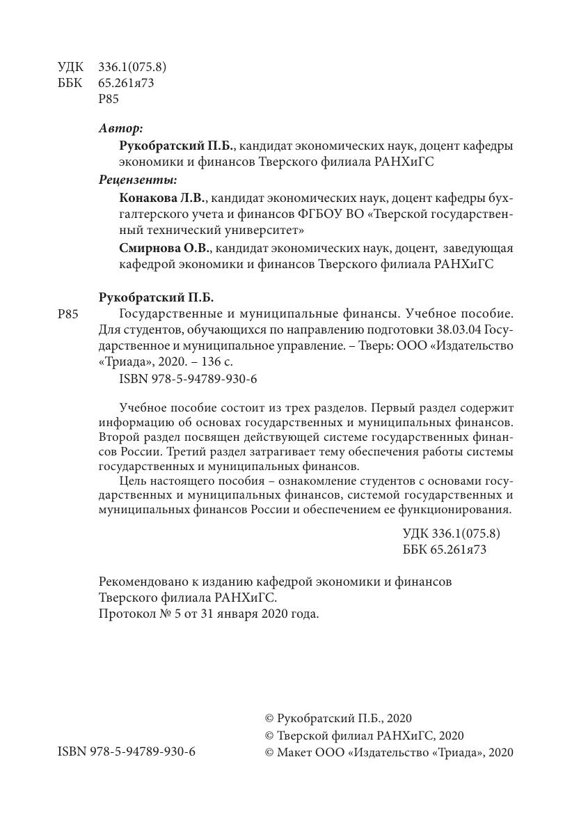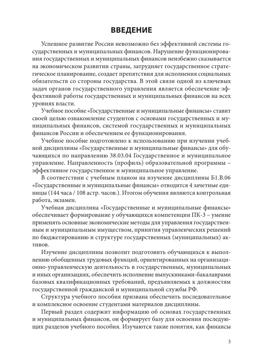 Учебное пособие состоит из трех разделов. Первый раздел содержит информацию об основах государственных и муниципальных финансов. Второй раздел посвящен действующей системе государственных финансов России. Третий раздел затрагивает тему обеспечения работы системы государственных и муниципальных финансов. Цель настоящего пособия – ознакомление студентов с основами государственных и муниципальных финансов, системой государственных и муниципальных финансов России и обеспечением ее функционирования.