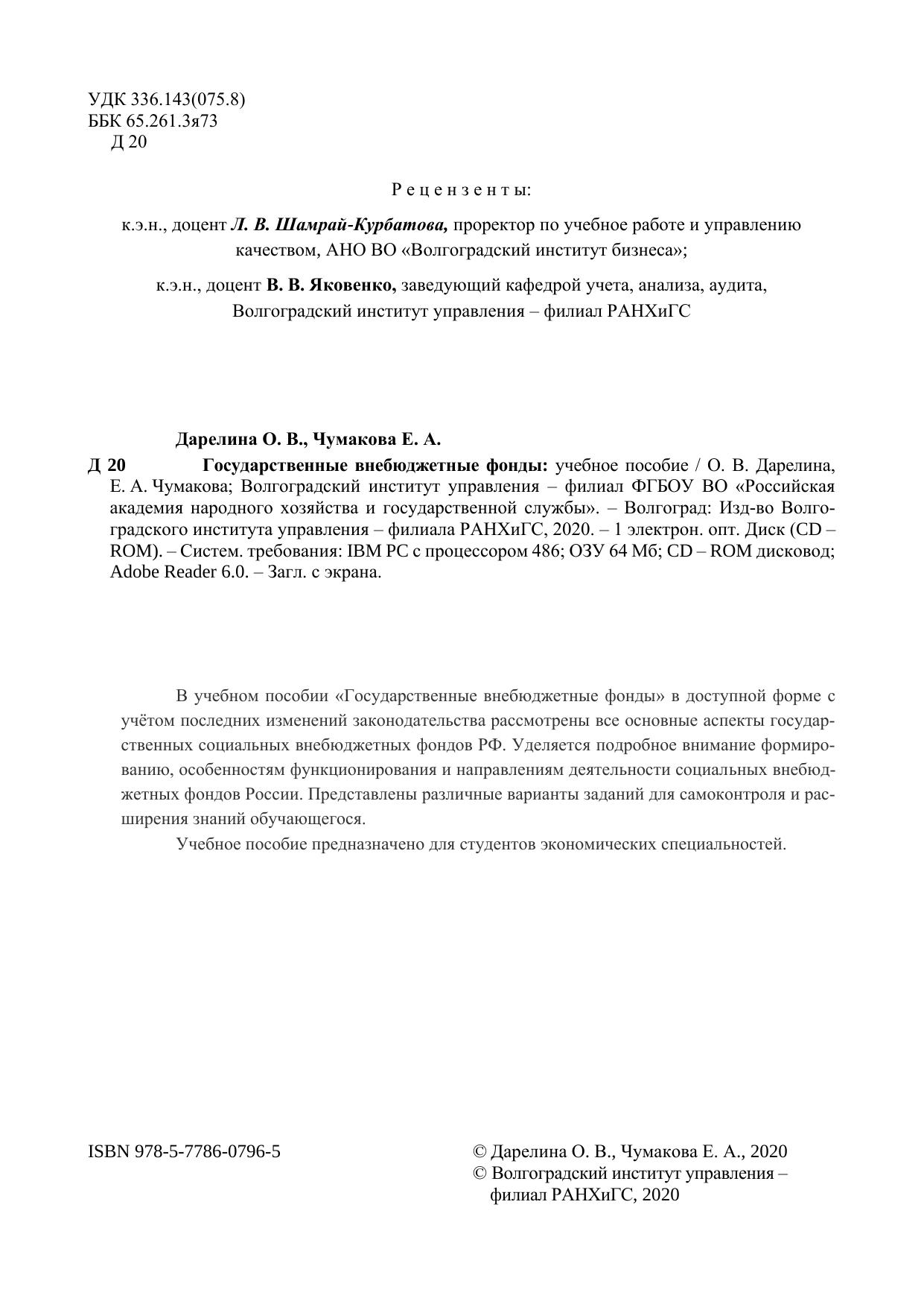 В учебном пособии «Государственные внебюджетные фонды» в доступной форме с учётом последних изменений законодательства рассмотрены все основные аспекты государ-ственных социальных внебюджетных фондов РФ. Уделяется подробное внимание формиро-ванию, особенностям функционирования и направлениям деятельности социальных внебюд-жетных фондов России. Представлены различные варианты заданий для самоконтроля и рас-ширения знаний обучающегося. Учебное пособие предназначено для студентов экономических специальностей.