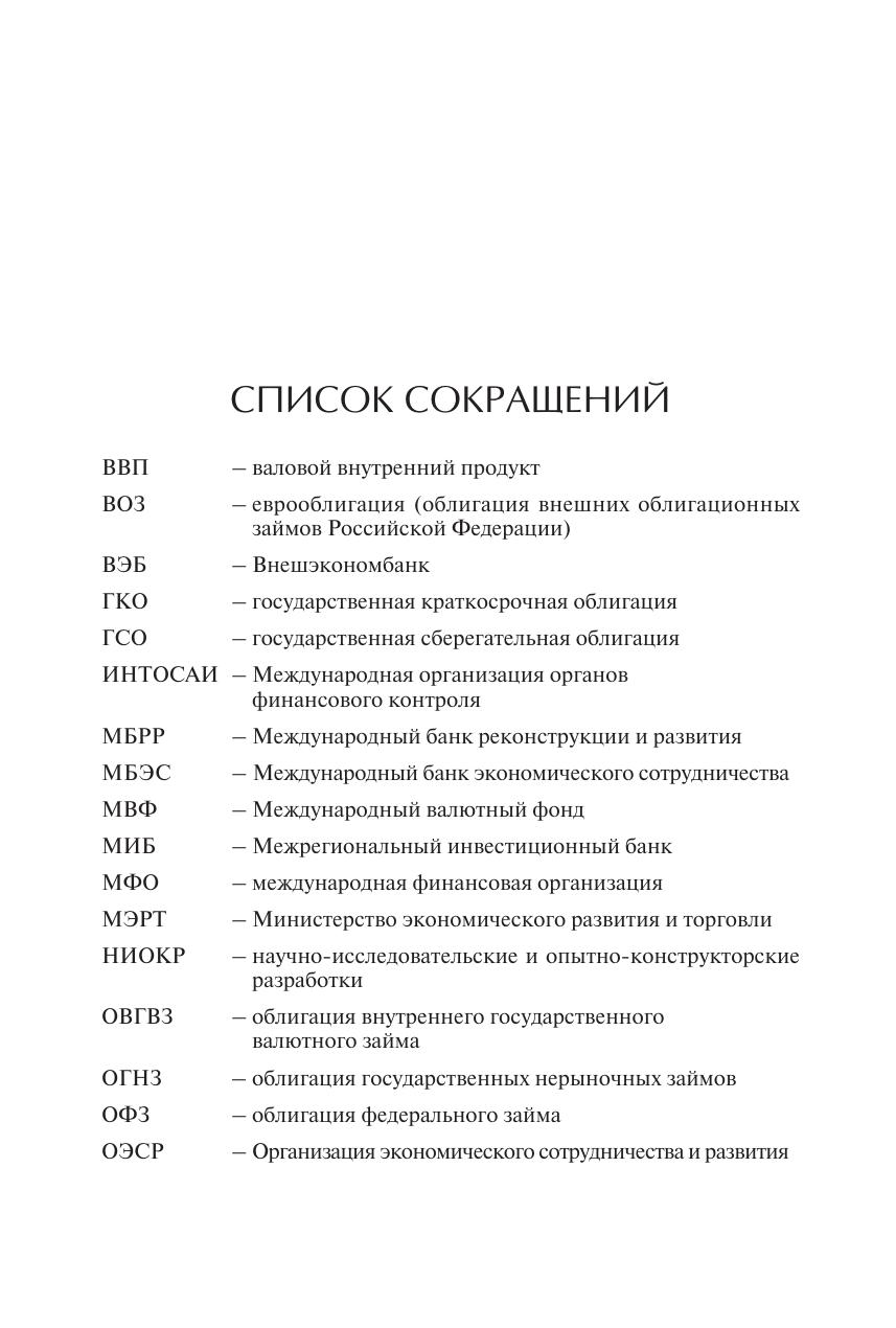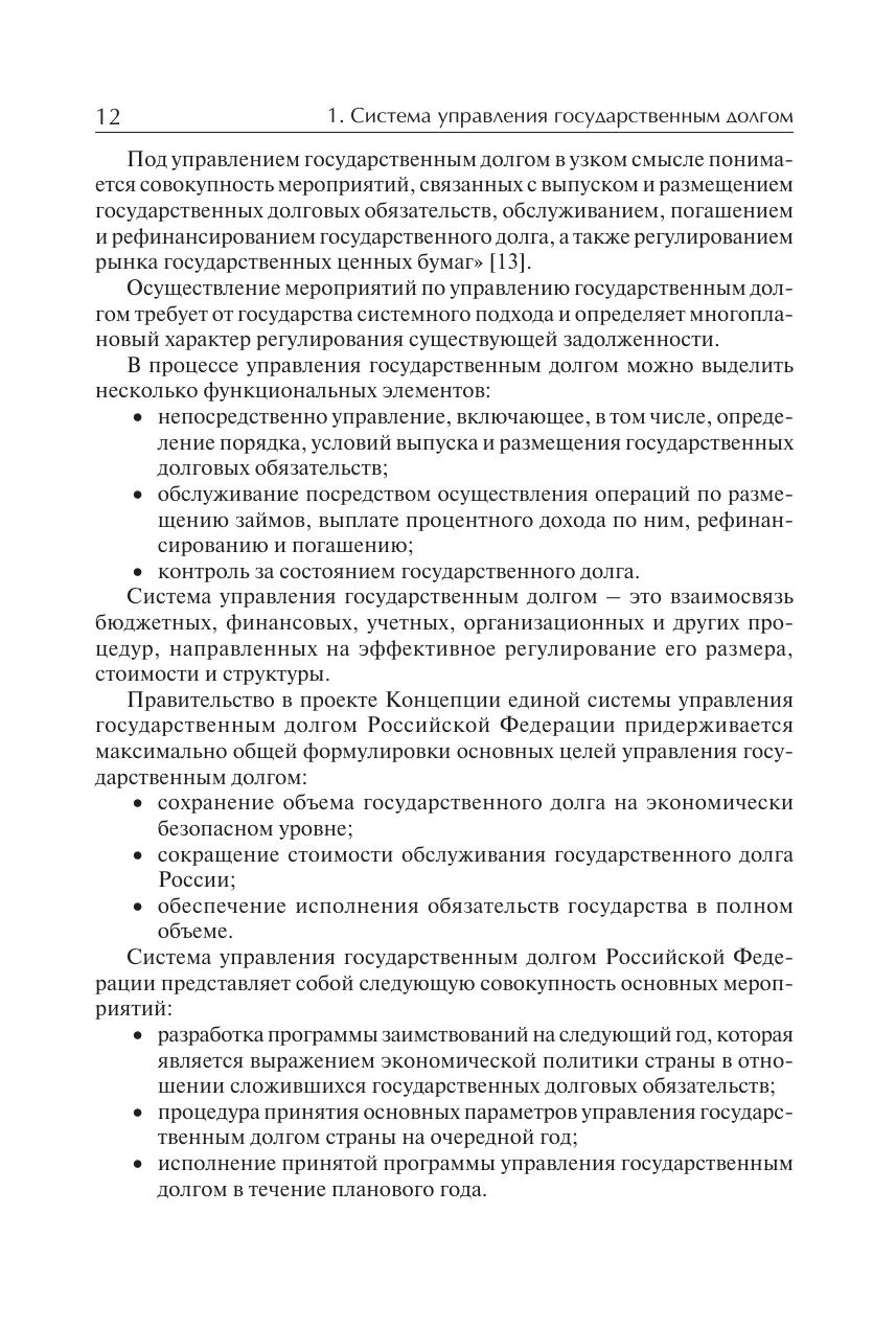 Представлены основные элементы системы управления государственным долгом. Анализируются ее цели, задачи и методы, влияющие на бюджетную, валютную и денежно-кредитную политику, институциональные аспекты, законодательная база, учет, отдельные долговые обязательства, международный опыт. Подробно рассматриваются вопросы разработки целей, задач и критериев проведения оценки эффективности управления. Для руководителей и специалистов органов управления сферой финансов. Может использоваться в учебном процессе по направлениям (специальностям) «Финансы и кредит», «Экономика», «Государственное и муниципальное управление». Представляет интерес для широкого круга ученых и специалистов в области экономики и финансов.