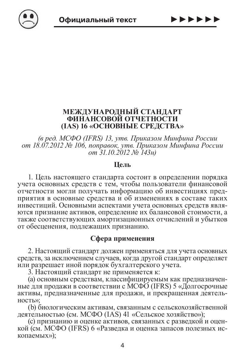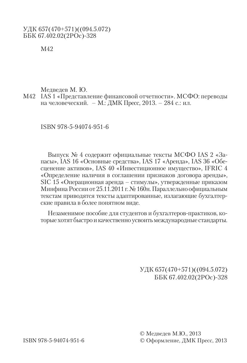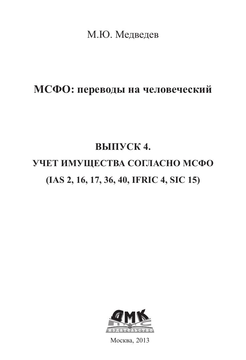 Выпуск № 4 содержит официальные тексты МСФО IAS 2 «Запасы», IAS 16 «Основные средства», IAS 17 «Аренда», IAS 36 «Обесценение активов», IAS 40 «Инвестиционное имущество», IFRIC 4 «Определение наличия в соглашении признаков договора аренды», SIC 15 «Операционная аренда – стимулы», утвержденные приказом Минфина России от 25.11.2011 г. № 160н. Параллельно официальным текстам приводятся тексты адаптированные, излагающие бухгалтерские правила в более понятном виде. Незаменимое пособие для студентов и бухгалтеров-практиков, которые хотят быстро и качественно усвоить международные стандарты.