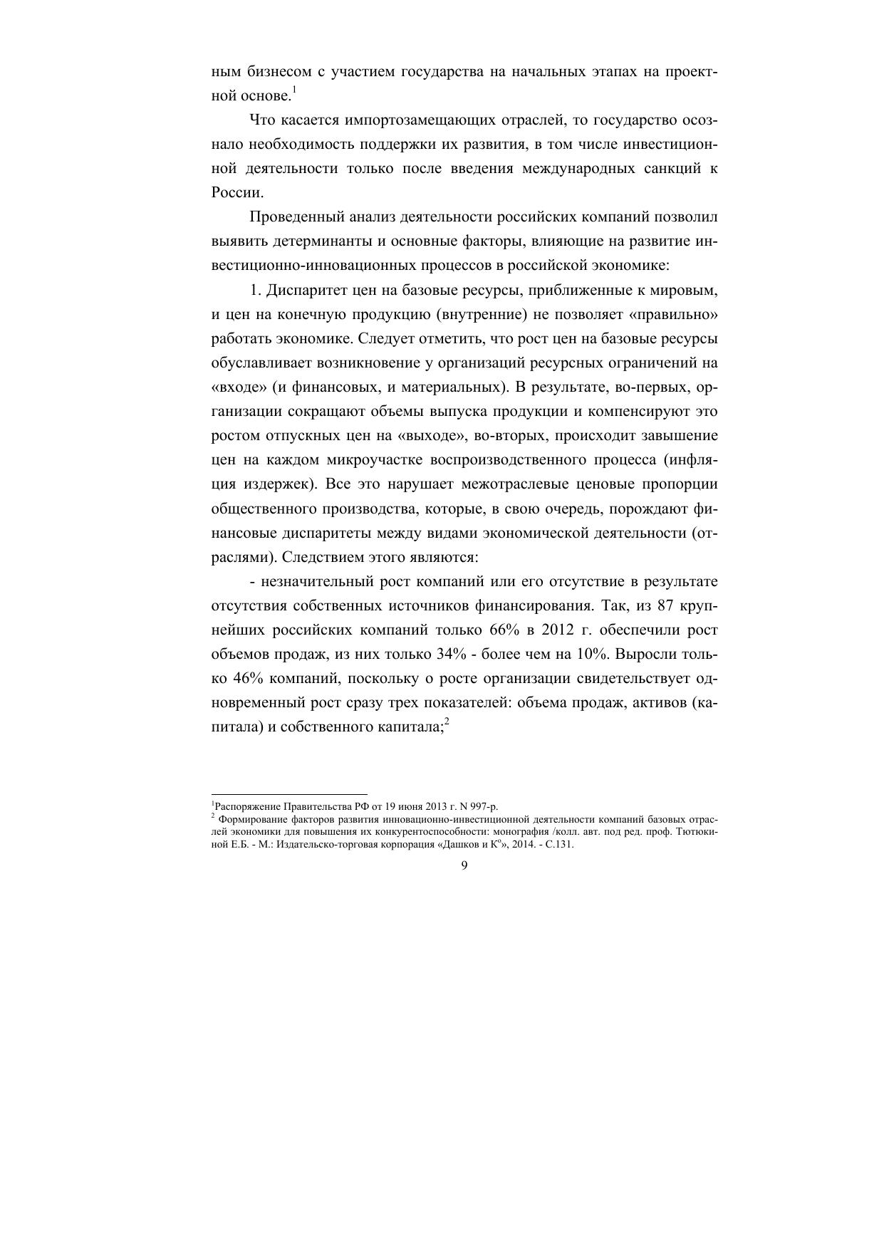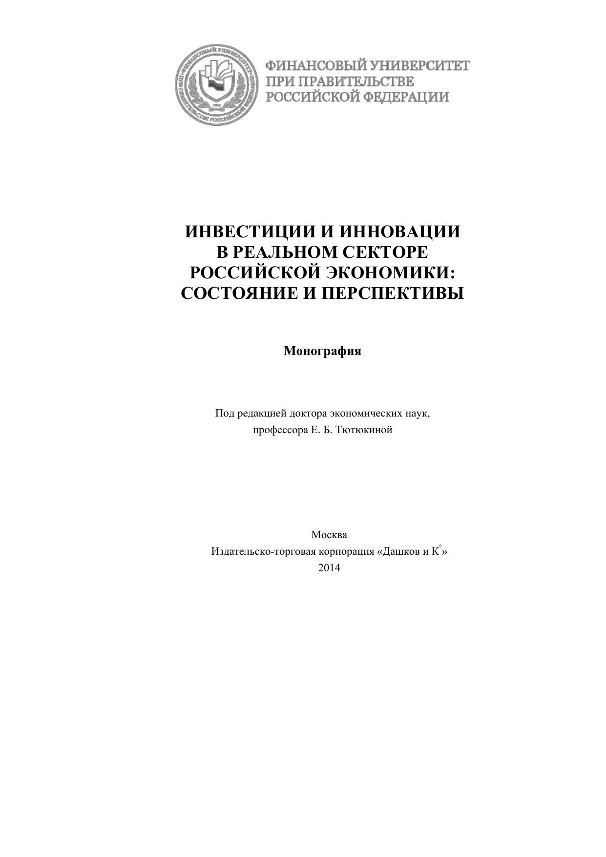 Инвестиции и инновации в реальном секторе российской экономики: состояние и перспективы