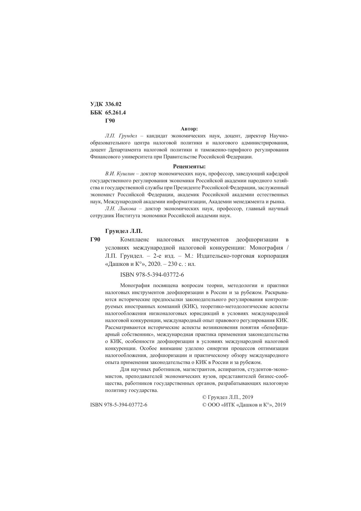 Монография посвящена вопросам теории, методологии и практики налоговых инструментов деофшоризации в России и за рубежом. Раскрываются исторические предпосылки законодательного регулирования контролируемых иностранных компаний (КИК), теоретико-методологические аспекты налогообложения низконалоговых юрисдикций в условиях международной налоговой конкуренции, международный опыт правового регулирования КИК. Рассматриваются исторические аспекты возникновения понятия «бенефициарный собственник», международная практика применения законодательства о КИК, особенности деофшоризации в условиях международной налоговой конкуренции. Особое внимание уделено синергии процессов оптимизации налогообложения, деофшоризации и практическому обзору международного опыта применения законодательства о КИК в России и за рубежом. Для научных работников, магистрантов, аспирантов, студентов-экономистов, преподавателей экономических вузов, представителей бизнес-сообщества, работников государственных органов, разрабатывающих налоговую политику государства.