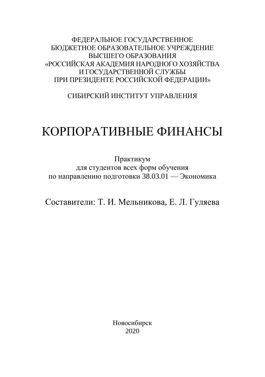 Корпоративные финансы: практикум