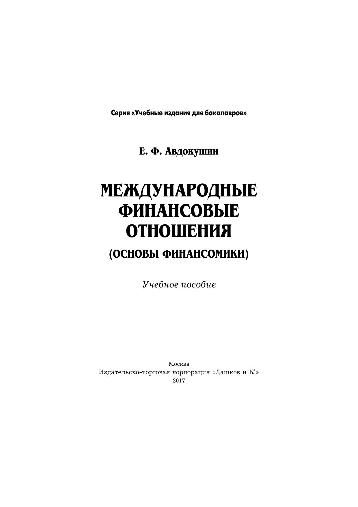 Международные финансовые отношения (основы финансомики): Учебное пособие