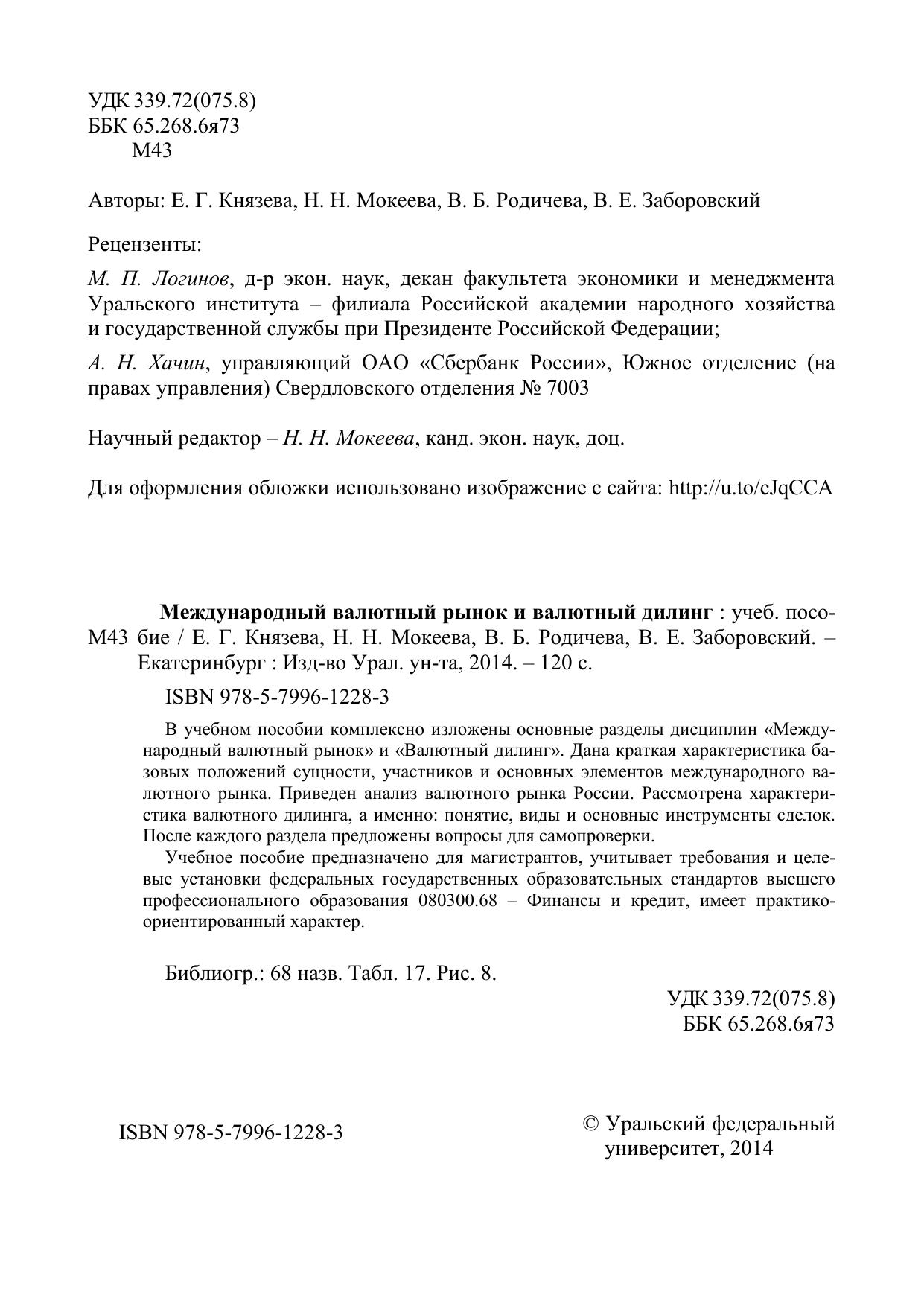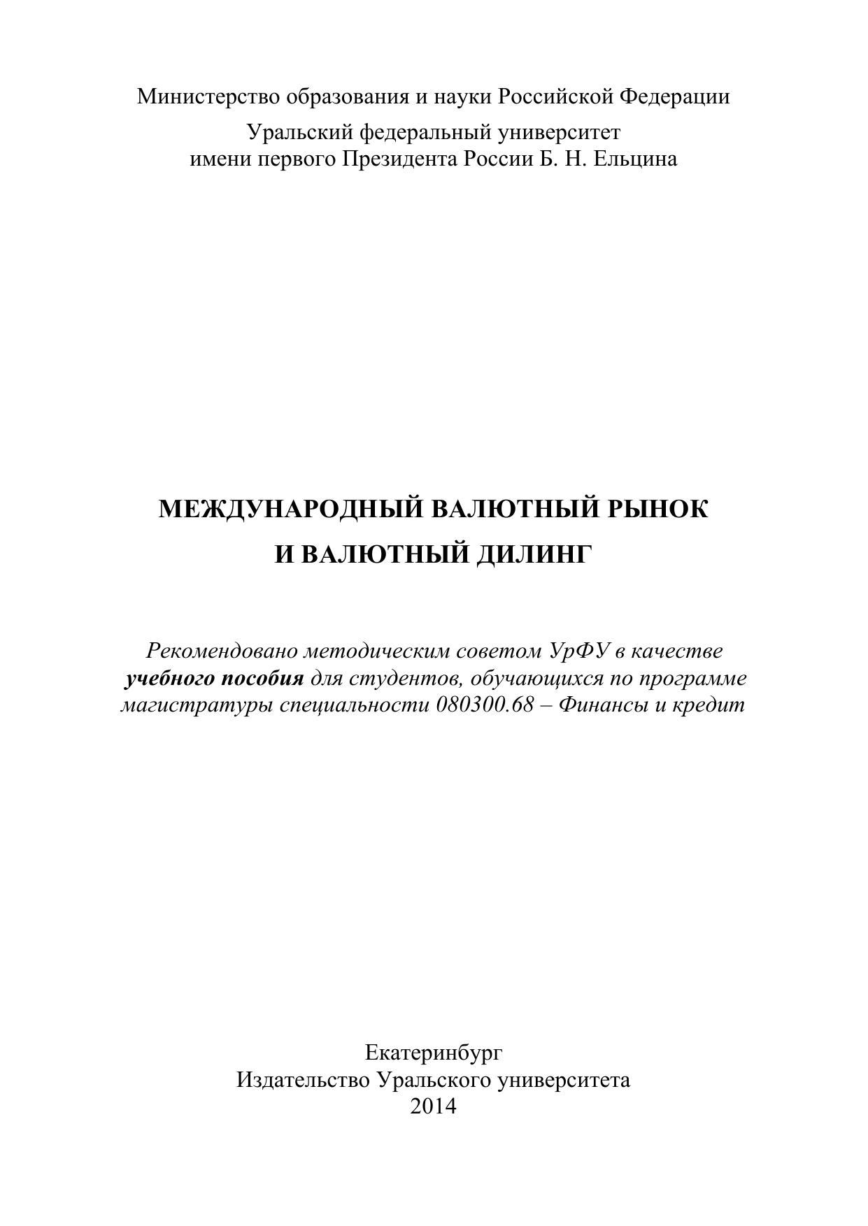 В учебном пособии комплексно изложены основные разделы дисциплин «Международный валютный рынок» и «Валютный дилинг». Дана краткая характеристика базовых положений сущности, участников и основных элементов международного валютного рынка. Приведен анализ валютного рынка России. Рассмотрена характеристика валютного дилинга, а именно: понятие, виды и основные инструменты сделок. После каждого раздела предложены вопросы для самопроверки. Учебное пособие предназначено для магистрантов, учитывает требования и целевые установки федеральных государственных образовательных стандартов высшего профессионального образования 080300.68 – Финансы и кредит, имеет практикоориентированный характер.