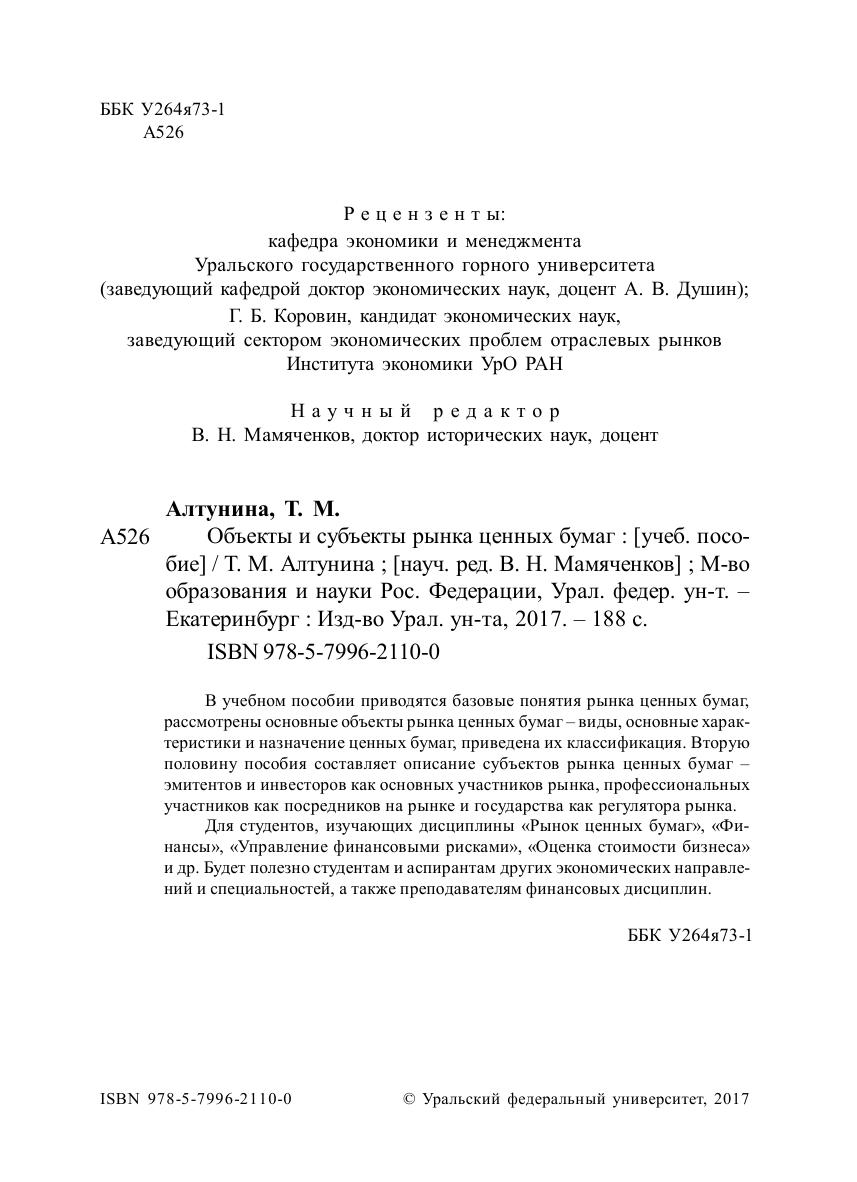 В учебном пособии приводятся базовые понятия рынка ценных бумаг, рассмотрены основные объекты рынка ценных бумаг – виды, основные характеристики и назначение ценных бумаг, приведена их классификация. Вторую половину пособия составляет описание субъектов рынка ценных бумаг - эмитентов и инвесторов как основных участников рынка, профессиональных участников как посредников на рынке и государства как регулятора рынка. Для студентов, изучающих дисциплины «Рынок ценных бумаг», «Финансы», «Управление финансовыми рисками», «Оценка стоимости бизнеса» и др. Будет полезно студентам и аспирантам других экономических направлений и специальностей, а также преподавателям финансовых дисциплин.