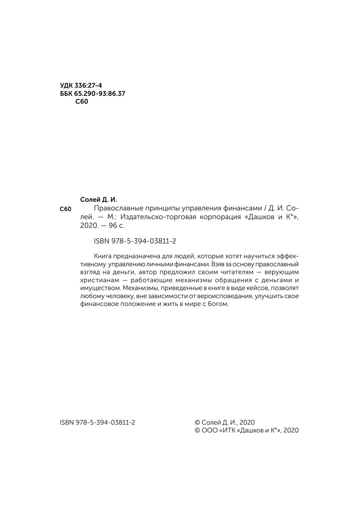 Книга предназначена для людей, которые хотят научиться эффективному управлению личными финансами. Взяв за основу православный взгляд на деньги, автор предложил своим читателям - верующим христианам - работающие механизмы обращения с деньгами и имуществом. Механизмы, приведенные в книге в виде кейсов, позволят любому человеку, вне зависимости от вероисповедания, улучшить свое финансовое положение и жить в мире с Богом.
