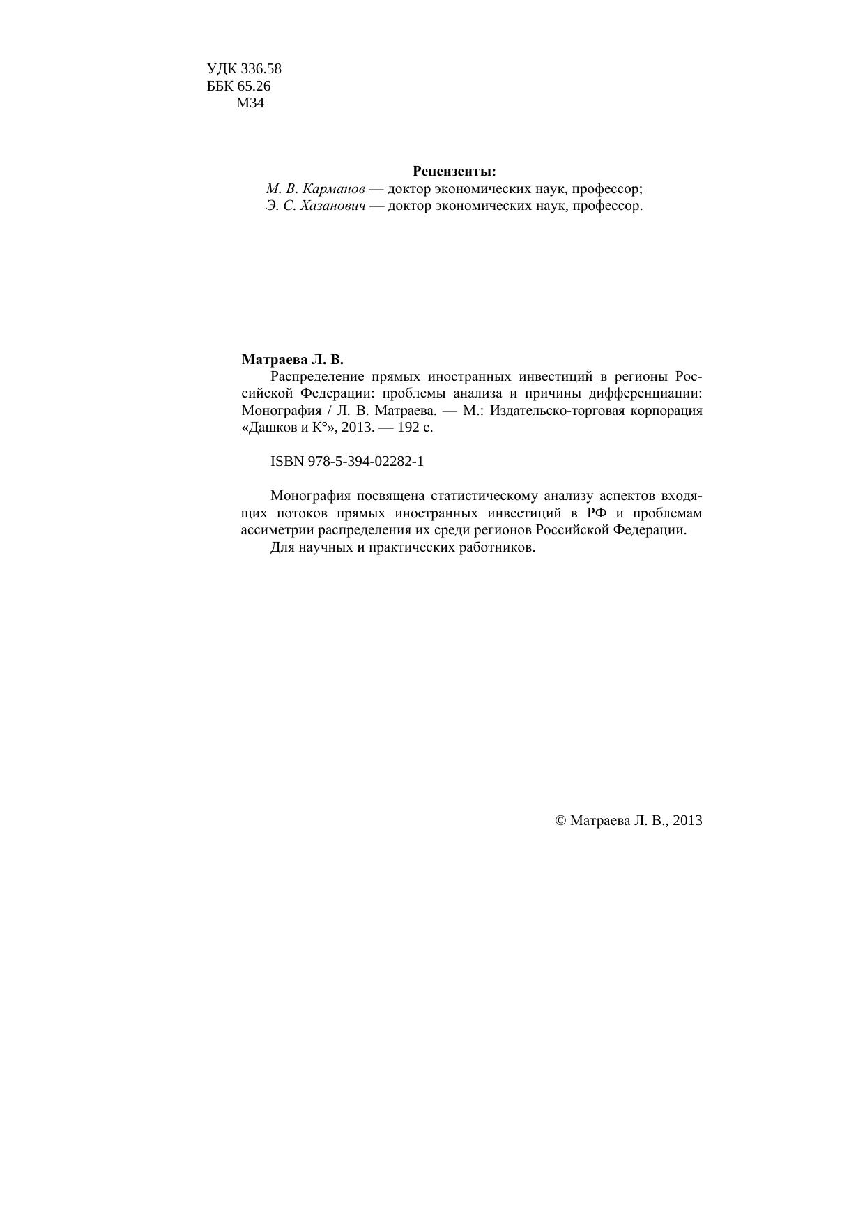 Распределение прямых иностранных инвестиций в регионы Российской Федерации: проблемы анализа и причины дифференциации: Монография