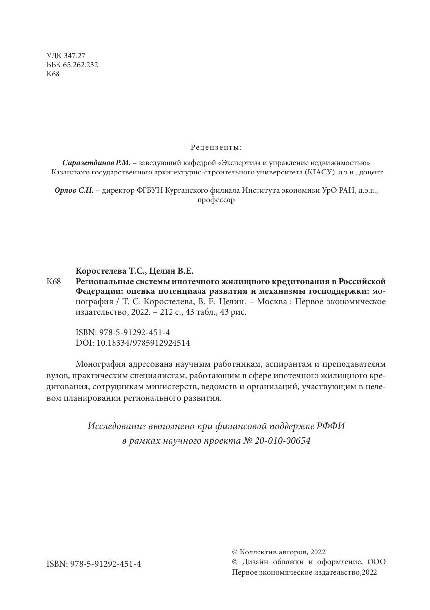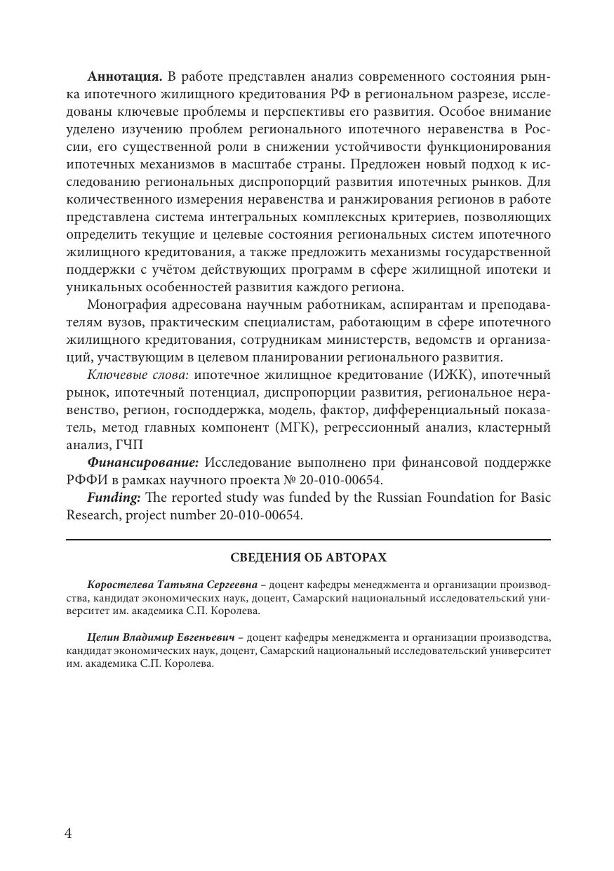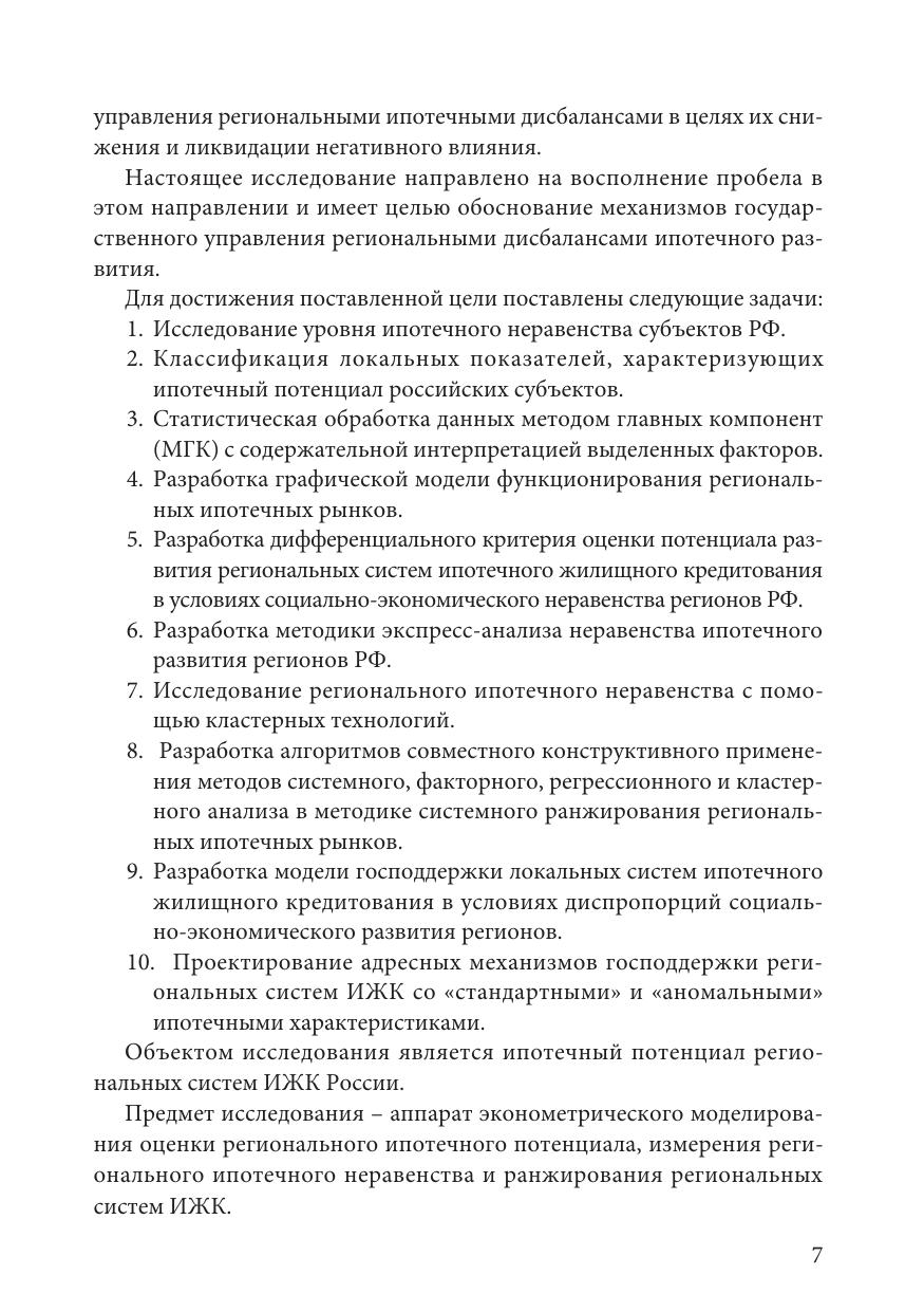 В работе представлен анализ современного состояния рынка ипотечного жилищного кредитования РФ в региональном разрезе, исследованы ключевые проблемы и перспективы его развития. Особое внимание уделено изучению проблем регионального ипотечного неравенства в России, его существенной роли в снижении устойчивости функционирования ипотечных механизмов в масштабе страны. Предложен новый подход к исследованию региональных диспропорций развития ипотечных рынков. Для количественного измерения неравенства и ранжирования регионов в работе представлена система интегральных комплексных критериев, позволяющих определить текущие и целевые состояния региональных систем ипотечного жилищного кредитования, а также предложить механизмы государственной поддержки с учётом действующих программ в сфере жилищной ипотеки и уникальных особенностей развития каждого региона. Монография адресована научным работникам, аспирантам и преподавателям вузов, практическим специалистам, работающим в сфере ипотечного жилищного кредитования, сотрудникам министерств, ведомств и организаций участвующим в целевом планировании регионального развития.