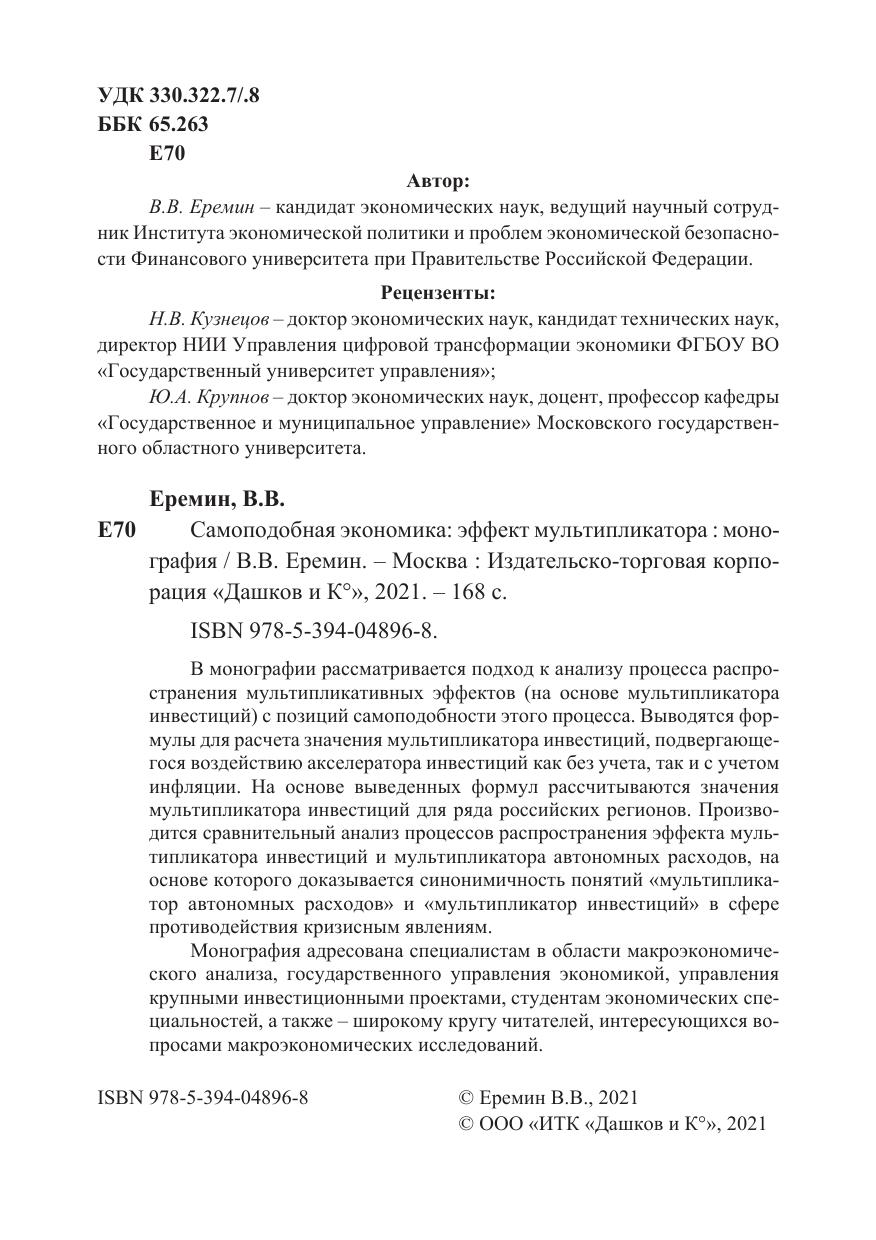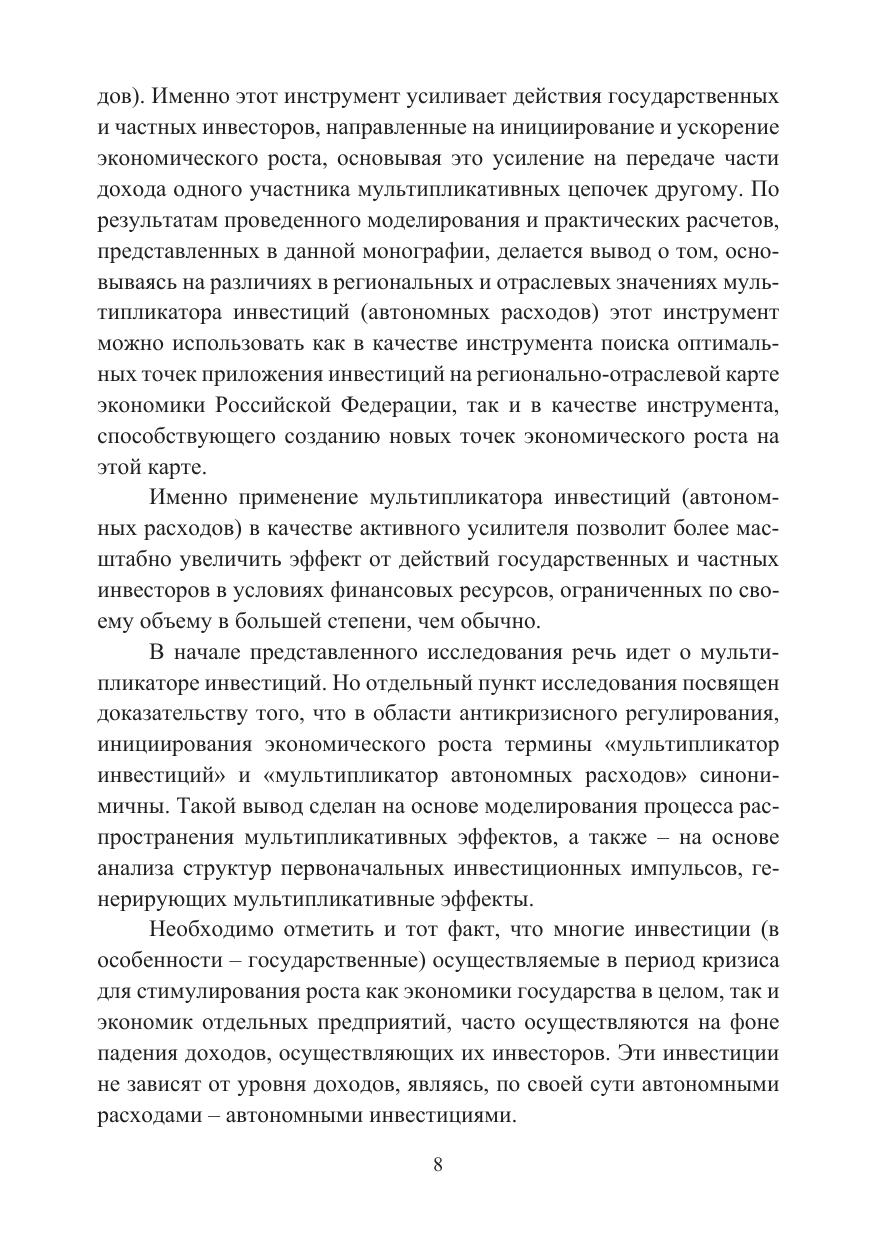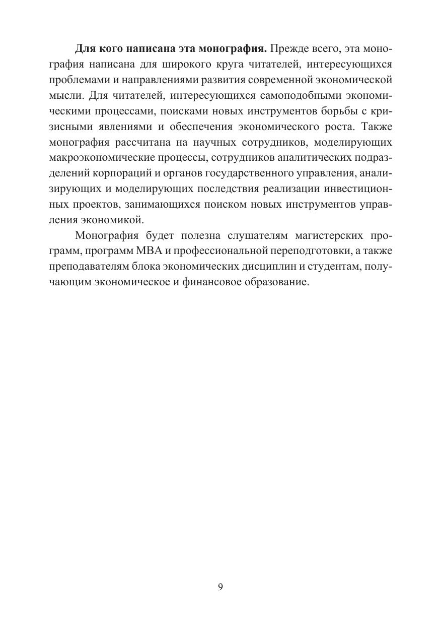 Монография адресована специалистам в области макроэкономического анализа, государственного управления экономикой, управления крупными инвестиционными проектами, студентам экономических специальностей, а также -широкому кругу читателей, интересующихся вопросами макроэкономических исследований.