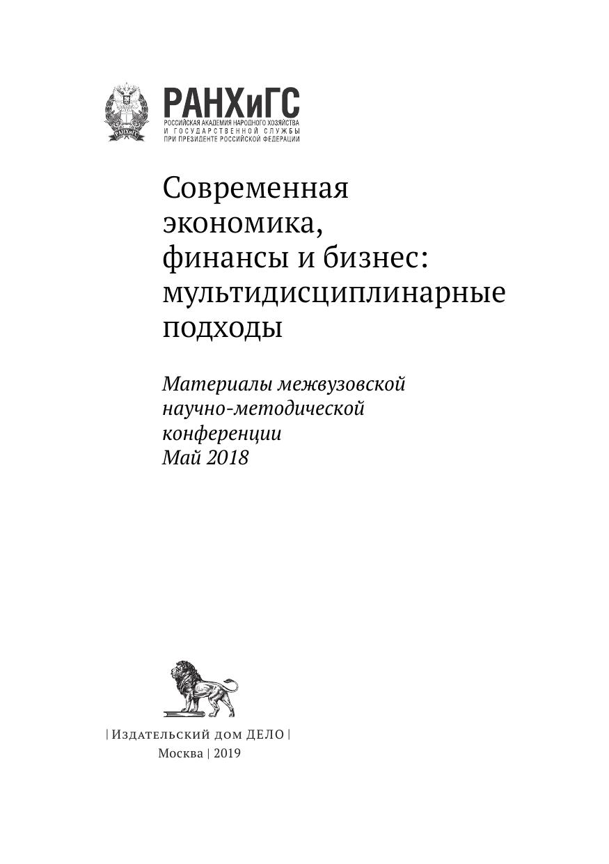 Современная экономика, финансы и бизнес: мультидисциплинарные подходы