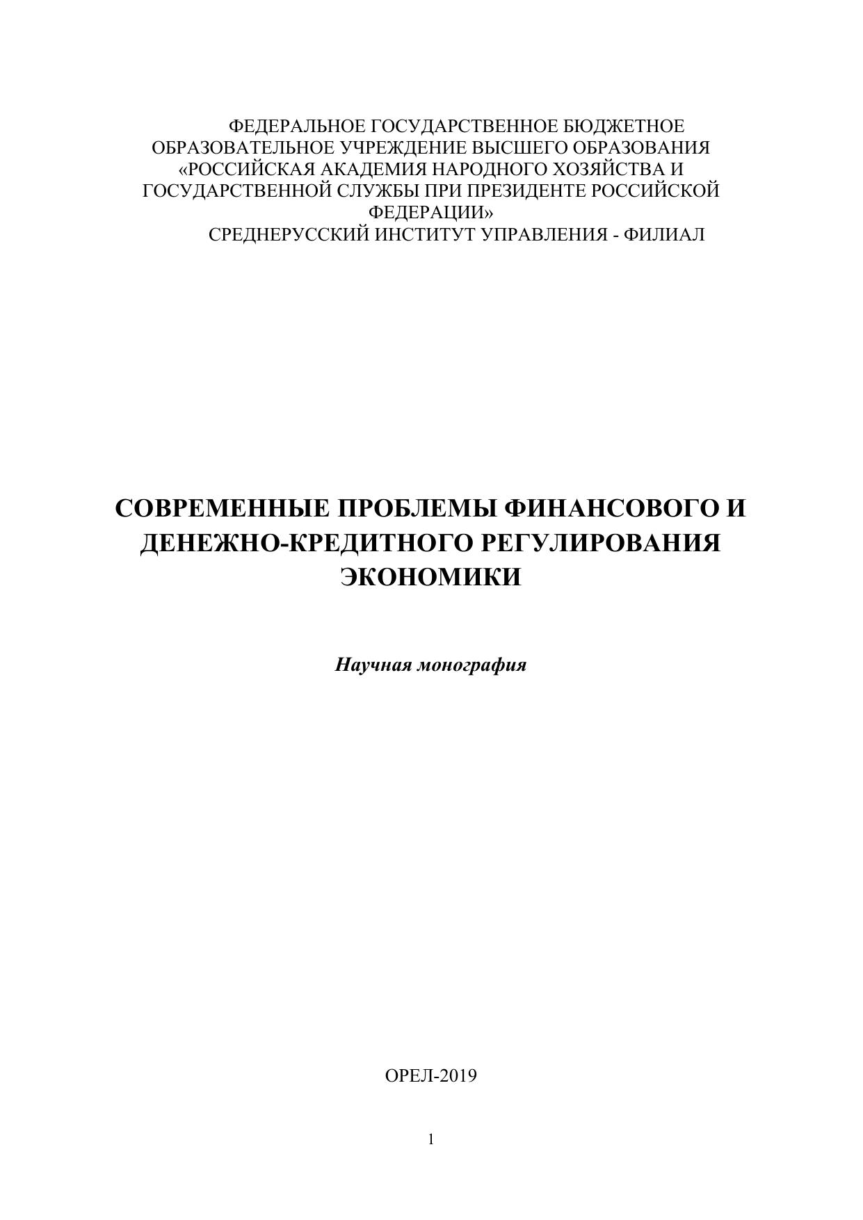 Современные проблемы финансового и денежно-кредитного регулирования экономики