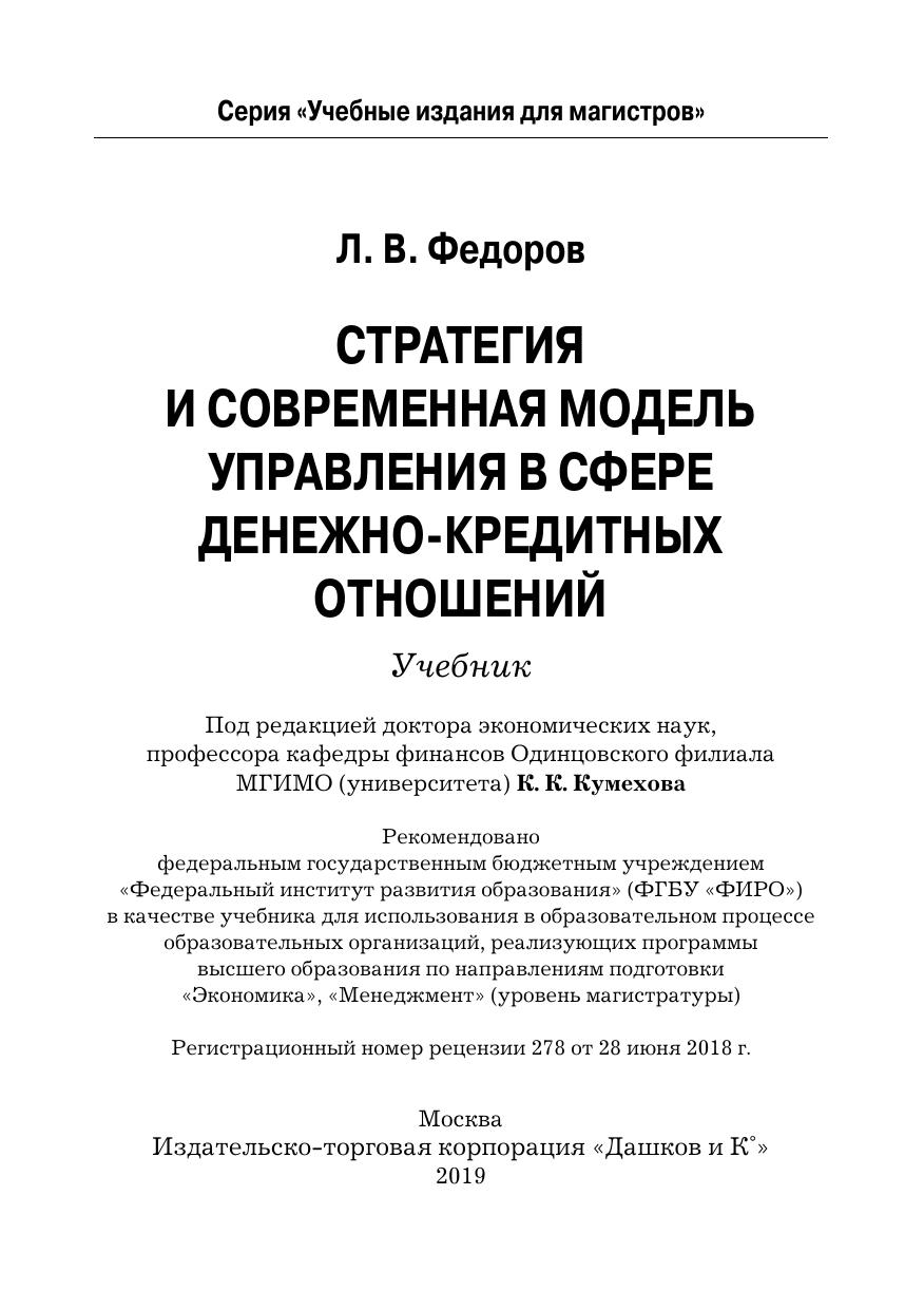 Стратегия и современная модель управления в сфере денежно-кредитных отношений
