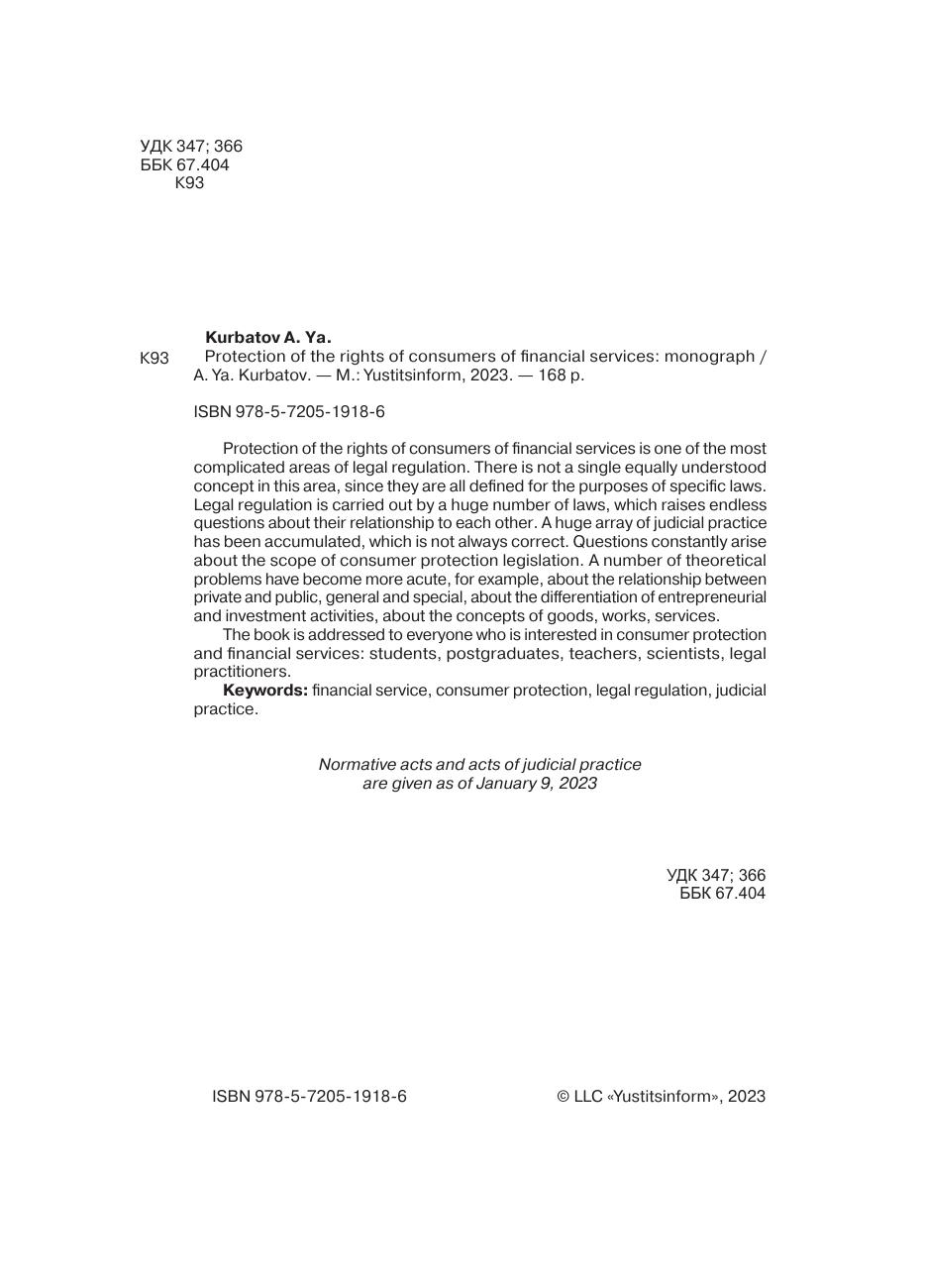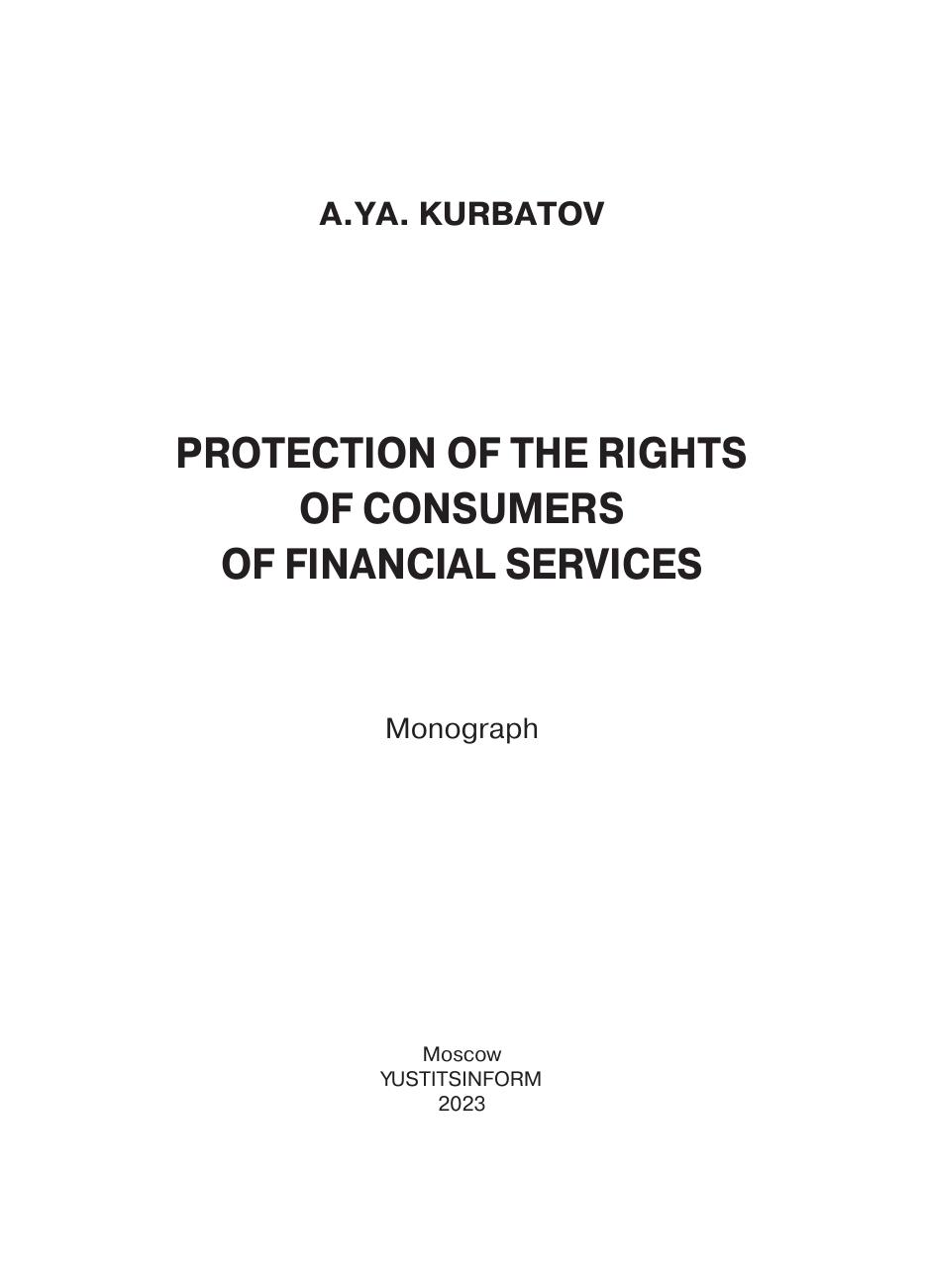 о понятиях товаров, работ, услуг. Книга адресована всем, кто интересуется вопросами защиты прав потребителей и сферой финансовых услуг: студентам, аспирантам, преподавателям, ученым, юристам-практикам