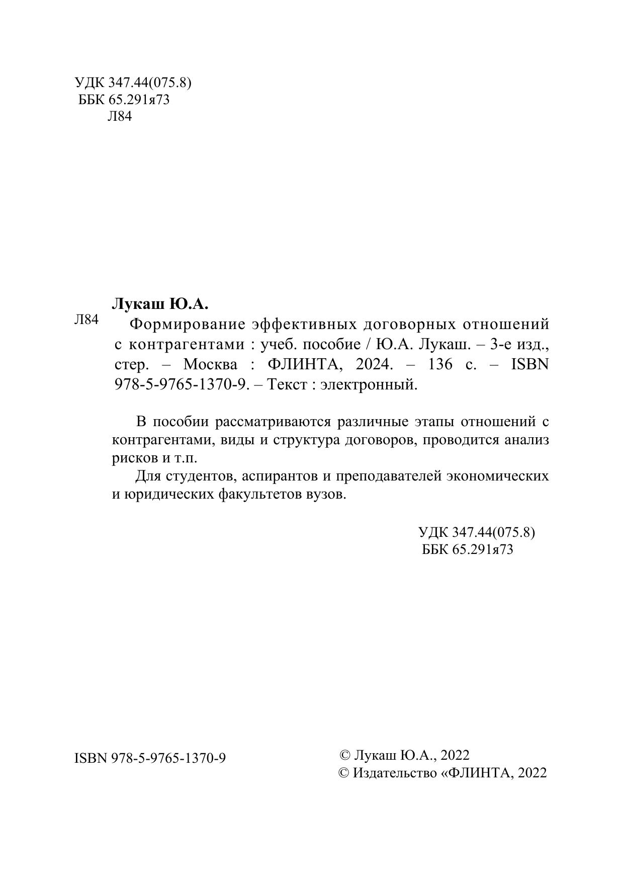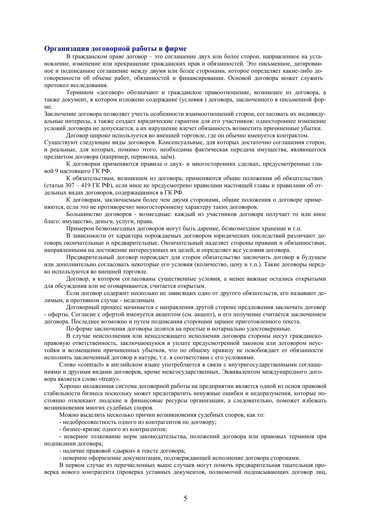 В пособии рассматриваются различные этапы отношений с контрагентами, виды и структура договоров, проводится анализ рисков и т.п. Для студентов, аспирантов и преподавателей экономических и юридических факультетов вузов.