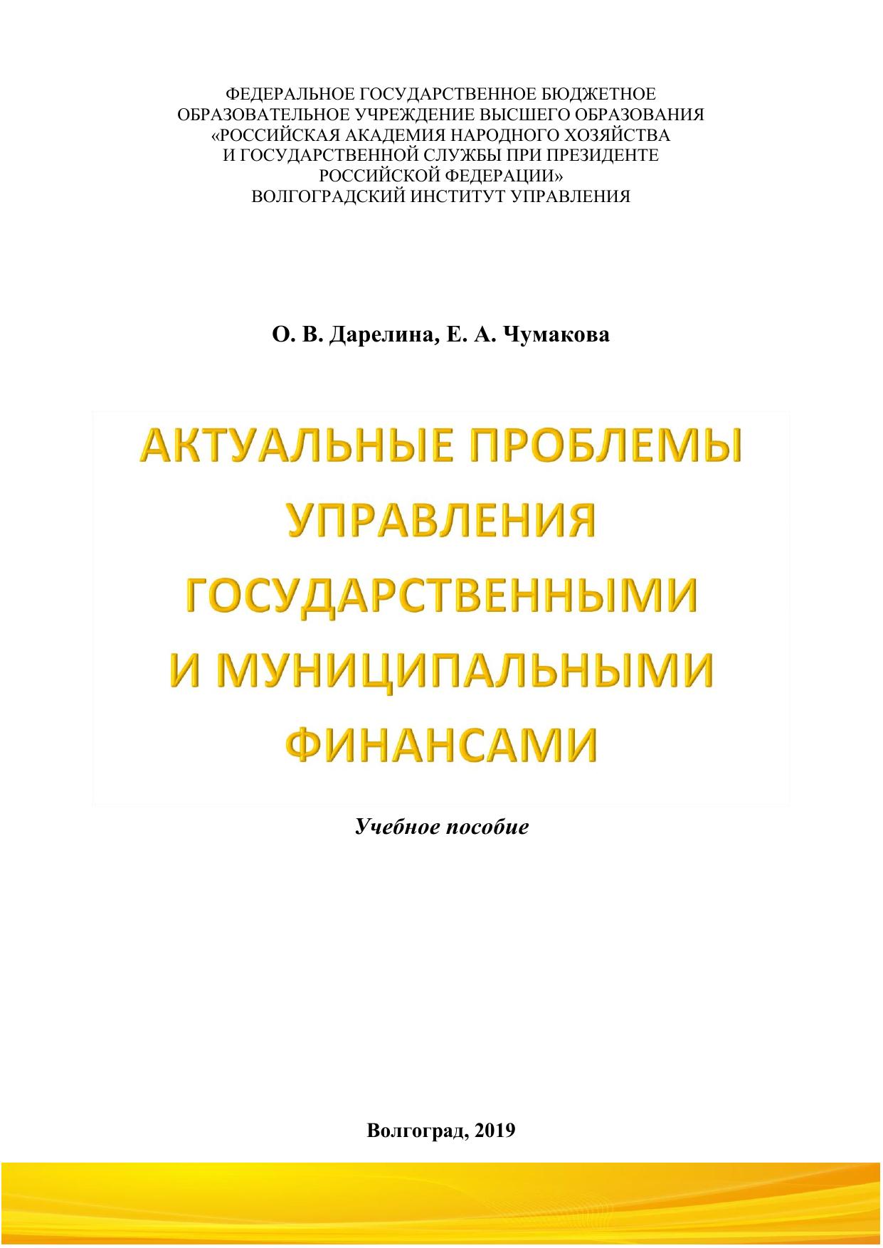 Актуальные проблемы управления государственными и муниципальными финансами
