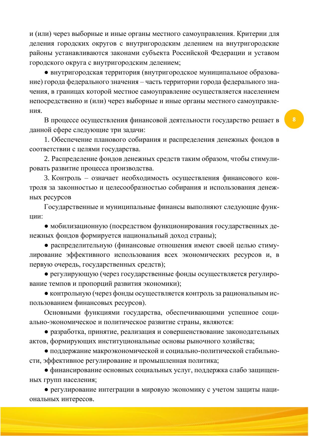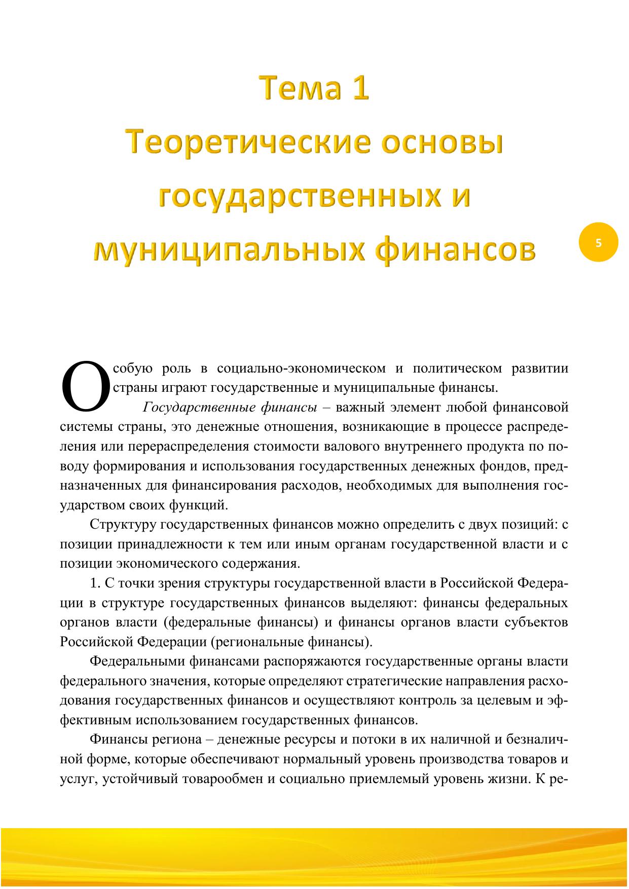 Радикальные преобразования, происходящие в экономике и социальной сфере России, делают чрезвычайно актуальной задачу целенаправленного использования финансов в ин-тересах развития страны, ее регионов и муниципальных образований. Решение данной за-дачи требует нахождения реальных путей усиления воздействия финансов на обществен-ное производство, получения с их помощью высоких экономических и социально значи-мых результатов. В учебном пособии анализируются актуальные проблемы управления государствен-ными и муниципальными финансами на современном уровне в Российской Федерации. Раскрываются содержание бюджетов субъектов власти, государственных внебюджетных фондов, тенденции их развития в результате реализации комплексных реформ. Анализи-руются основные определения бюджетного и налогового законодательства, рассматрива-ются направления государственной финансовой политики на среднесрочную перспек-тиву. Учебное пособие написано для обучающихся по специальности «Экономическая без-опасность», слушателей отделений переподготовки и повышения профессиональной ква-лификации по экономическим специальностям.