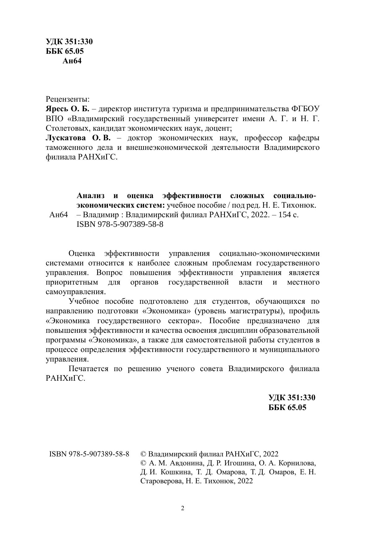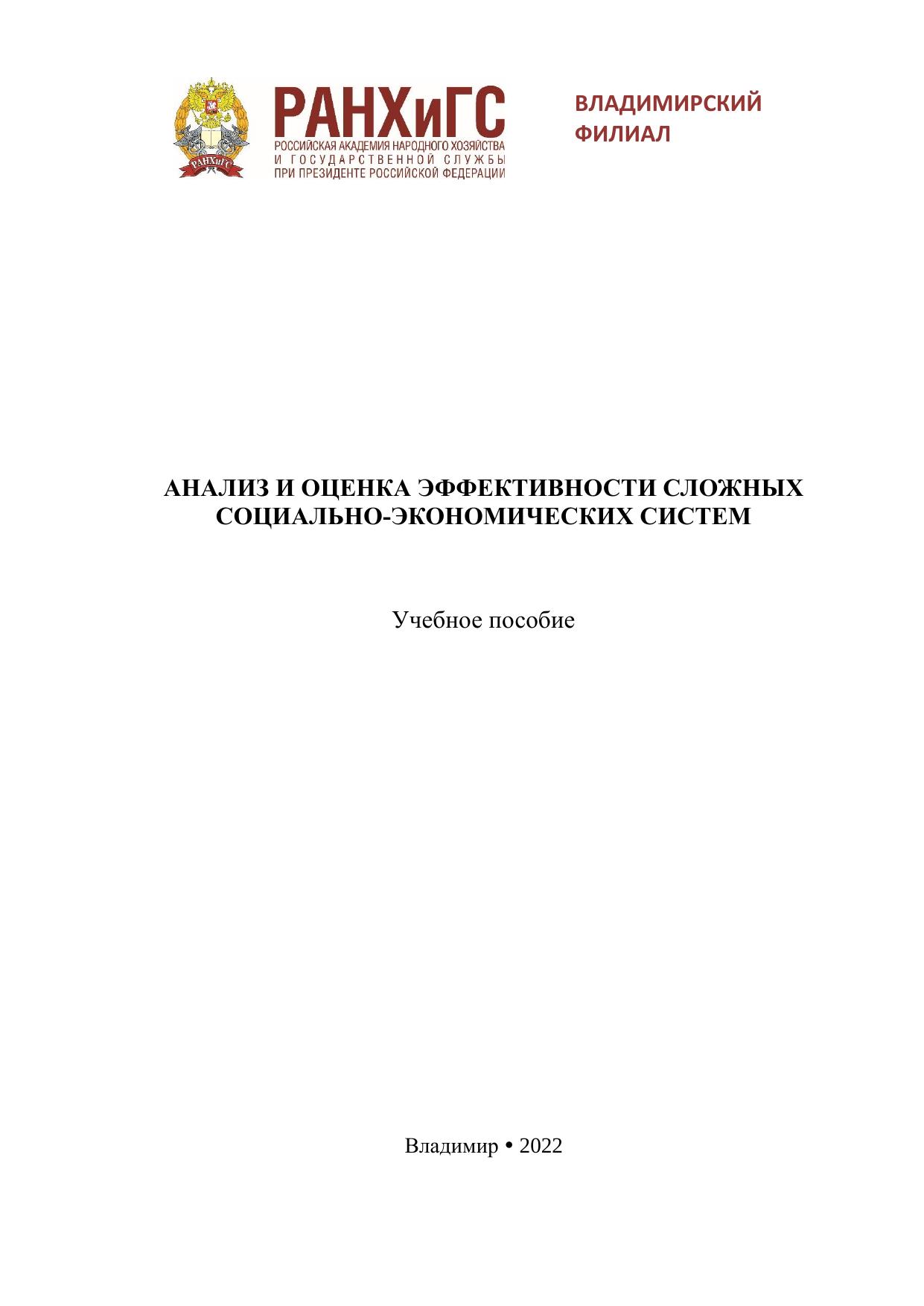 Анализ и оценка эффективности сложных социально-экономических систем