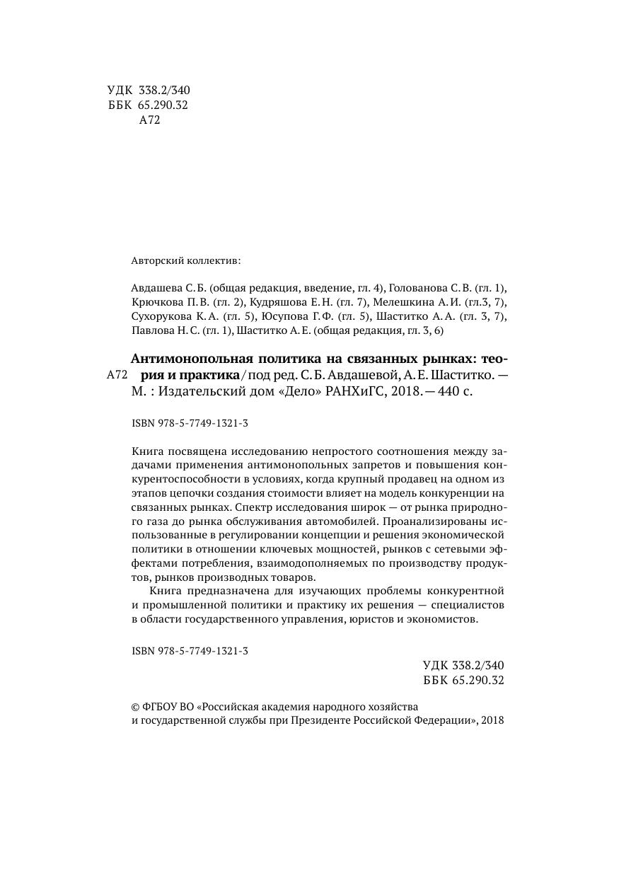 Книга посвящена исследованию непростого соотношения между задачами применения антимонопольных запретов и повышения конкурентоспособности в условиях, когда крупный продавец на одном из этапов цепочки создания стоимости влияет на модель конкуренции на связанных рынках. Спектр исследования широк — от рынка природного газа до рынка обслуживания автомобилей. Проанализированы использованные в регулировании концепции и решения экономической политики в отношении ключевых мощностей, рынков с сетевыми эффектами потребления, взаимодополняемых по производству продуктов, рынков производных товаров. Книга предназначена для изучающих проблемы конкурентной и промышленной политики и практику их решения — специалистов в области государственного управления, юристов и экономистов.