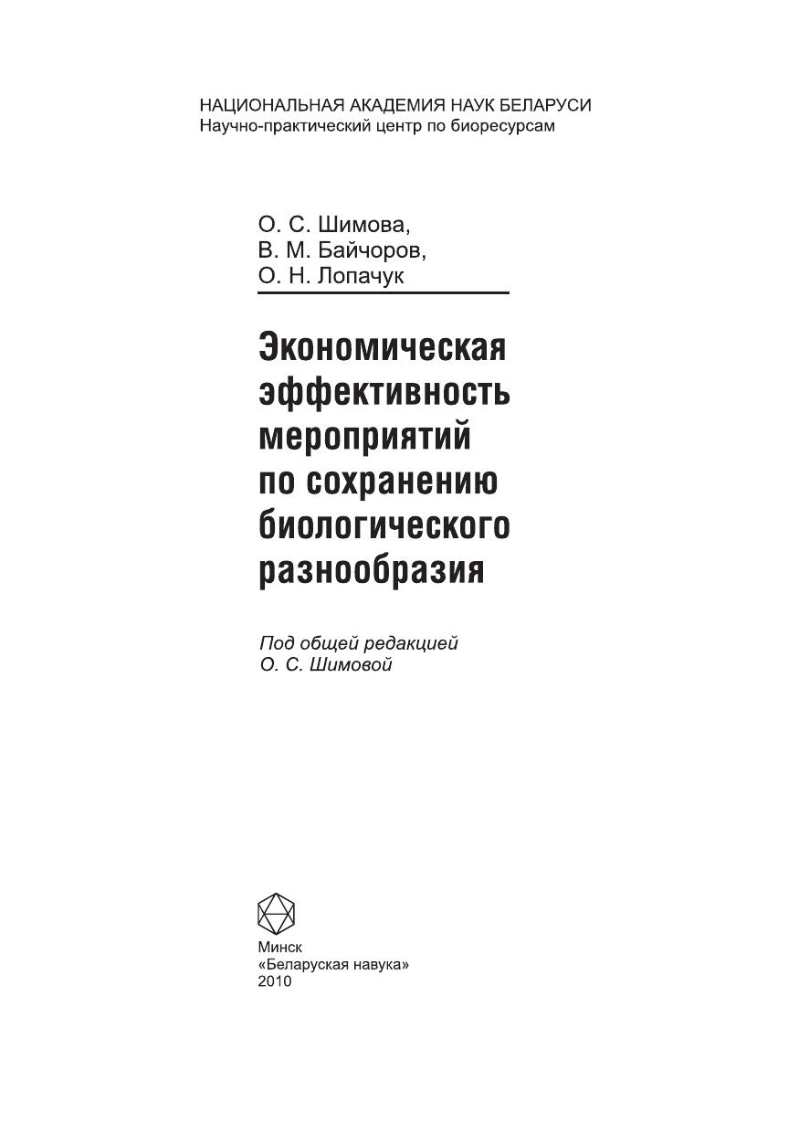 Экономическая эффективность мероприятий по сохранению биологического разнообразия