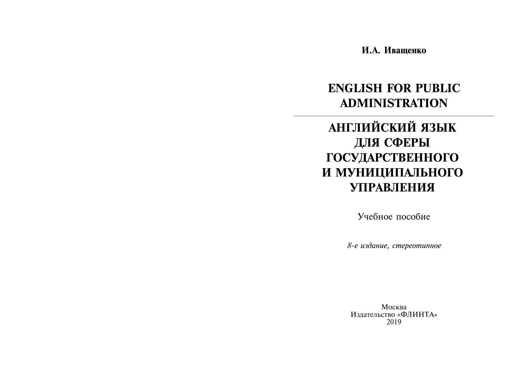 English for Public Administration. Английский язык для сферы государственного и муниципального управления