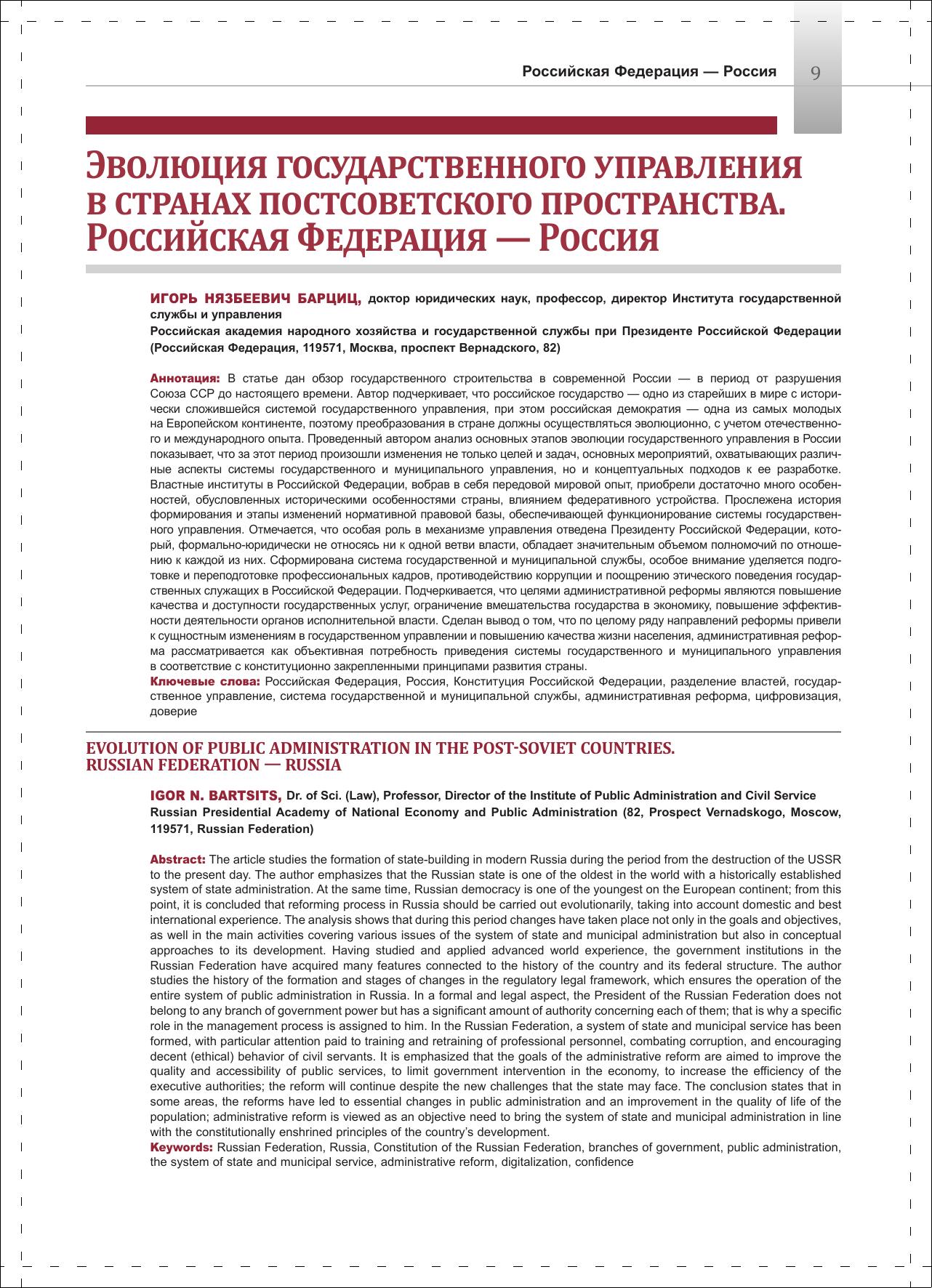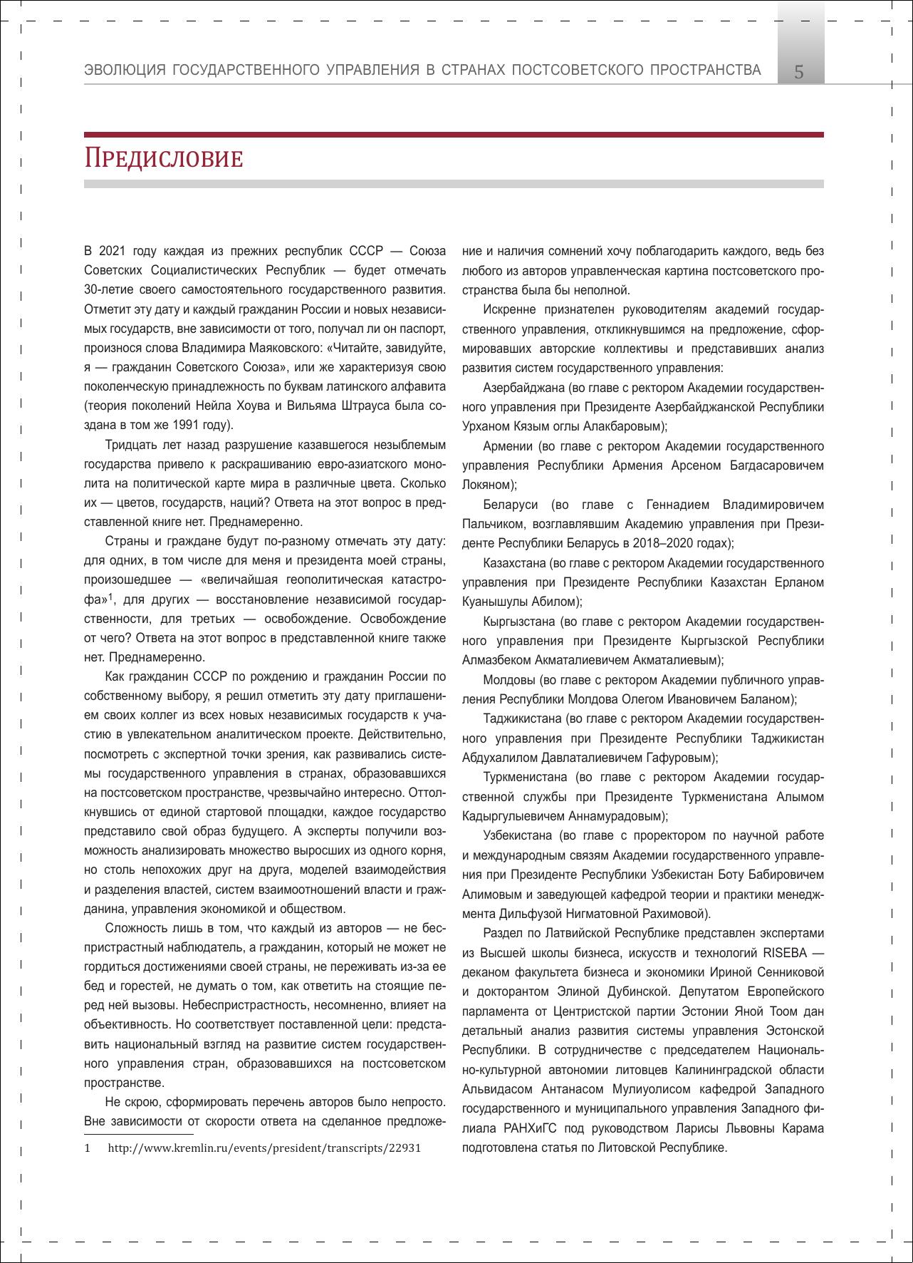 Эволюция государственного управления в странах постсоветского пространства. 1991–2021