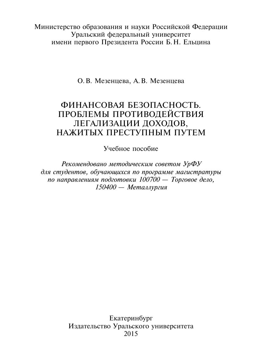 Финансовая безопасность. Проблемы противодействия легализации доходов, нажитых преступным путем: учеб. пособие
