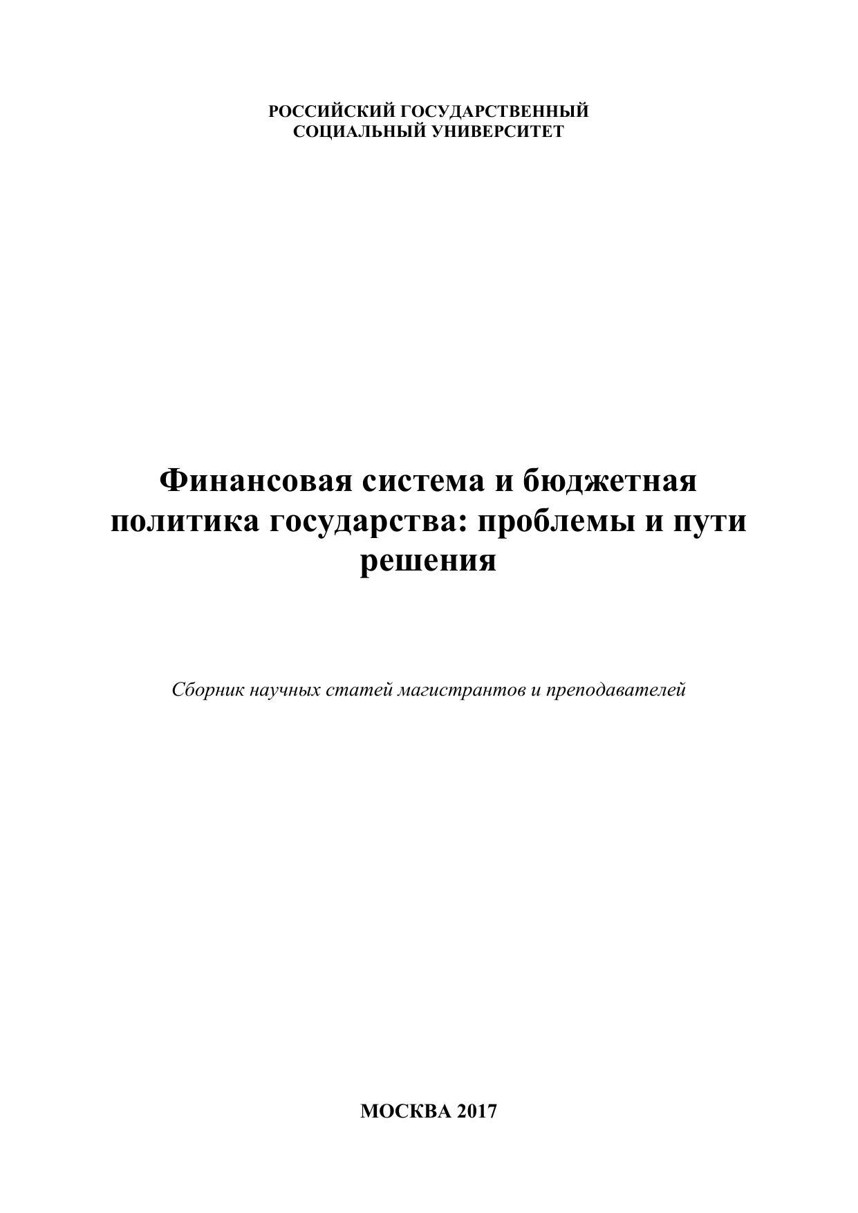 В сборнике содержатся материалы магистрантов и преподавателей РГСУ, отражающие научно-исследовательские и практико-ориентированные инициативы. Представлены результаты теоретических исследований в области финансовой системы и бюджетной политики государства. Сборник предназначен для широкого круга исследователей, занимающихся вопросами развития финансово-бюджетной системы, а также для аспирантов, магистров и студентов экономического профиля.
