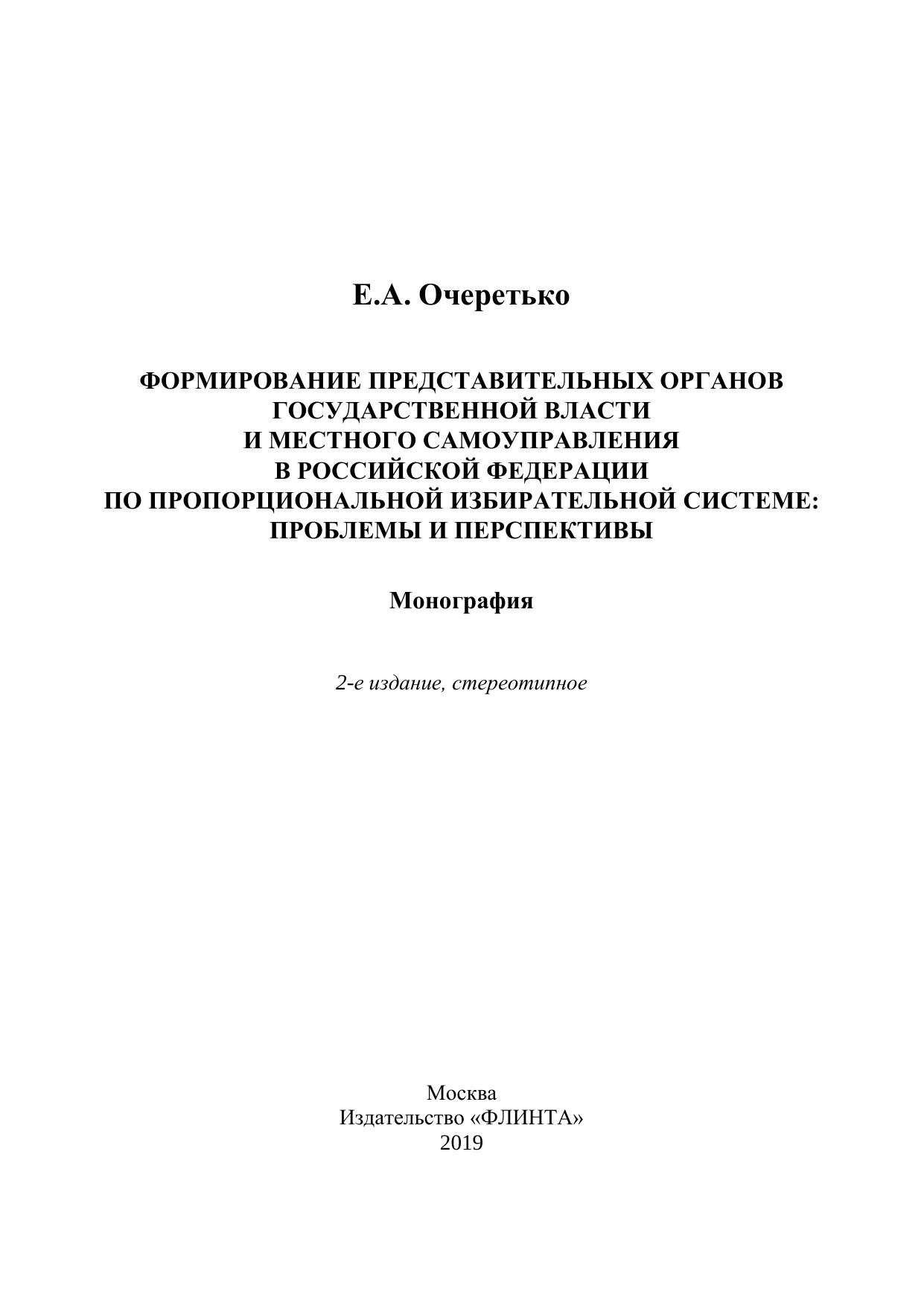 Формирование представительных органов государственной власти и местного самоуправления в Российской Федерации по пропорциональной избирательной системе? Проблемы и перспективы