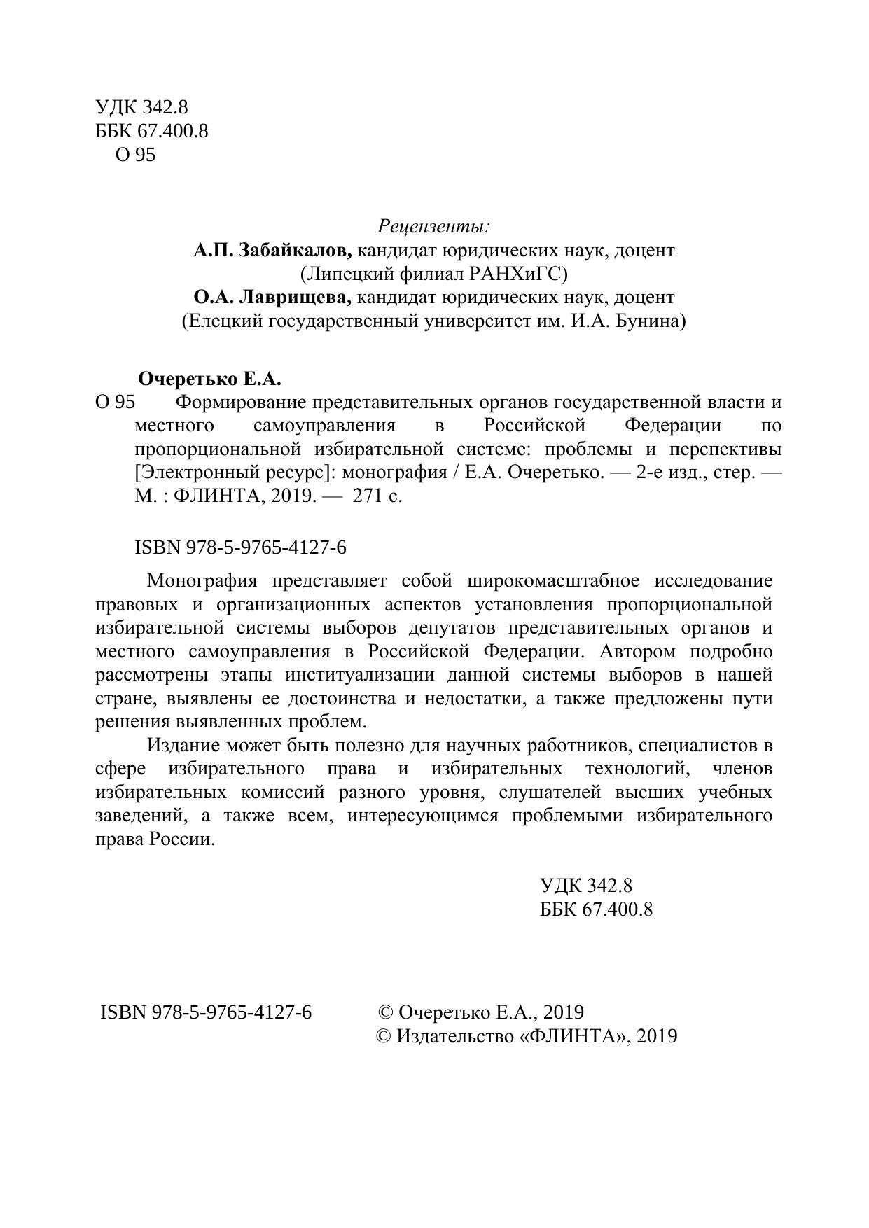 Монография представляет собой широкомасштабное исследование правовых и организационных аспектов установления пропорциональной избирательной системы выборов депутатов представительных органов и местного самоуправления в Российской Федерации. Автором подробно