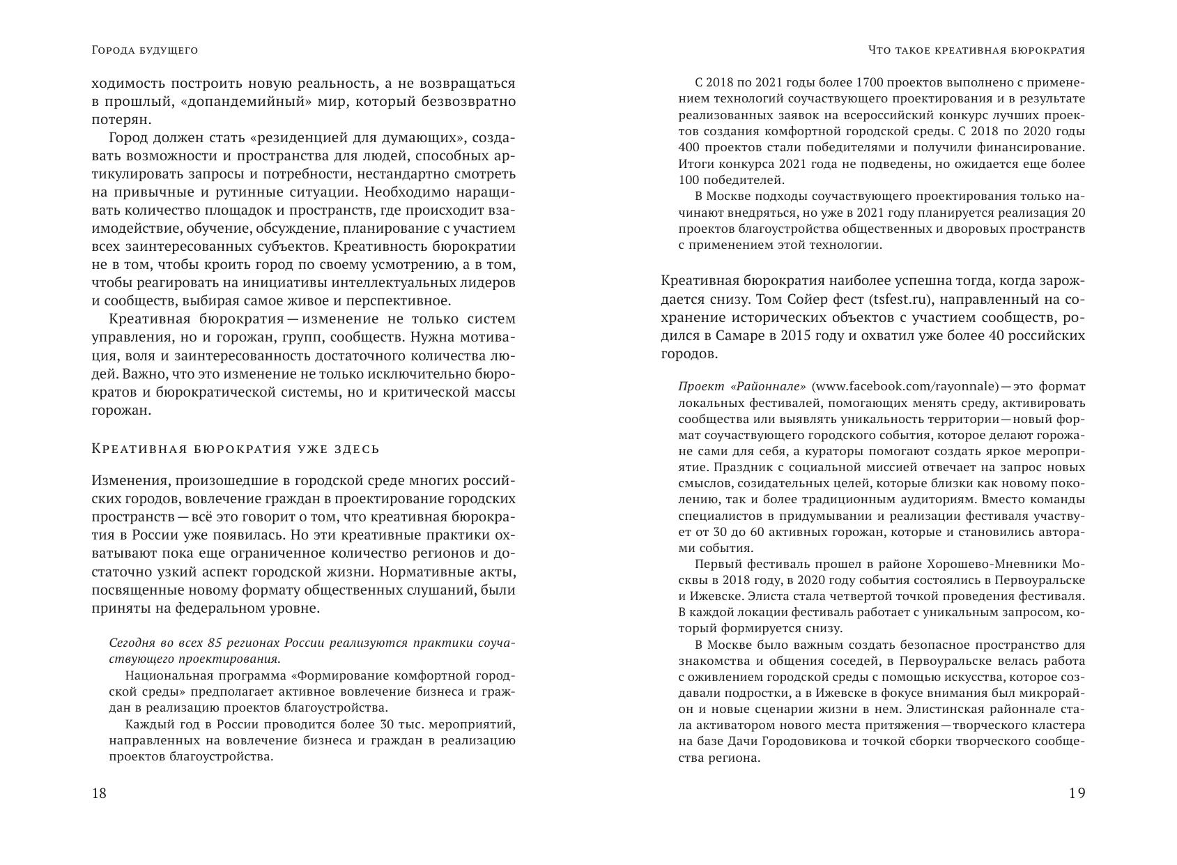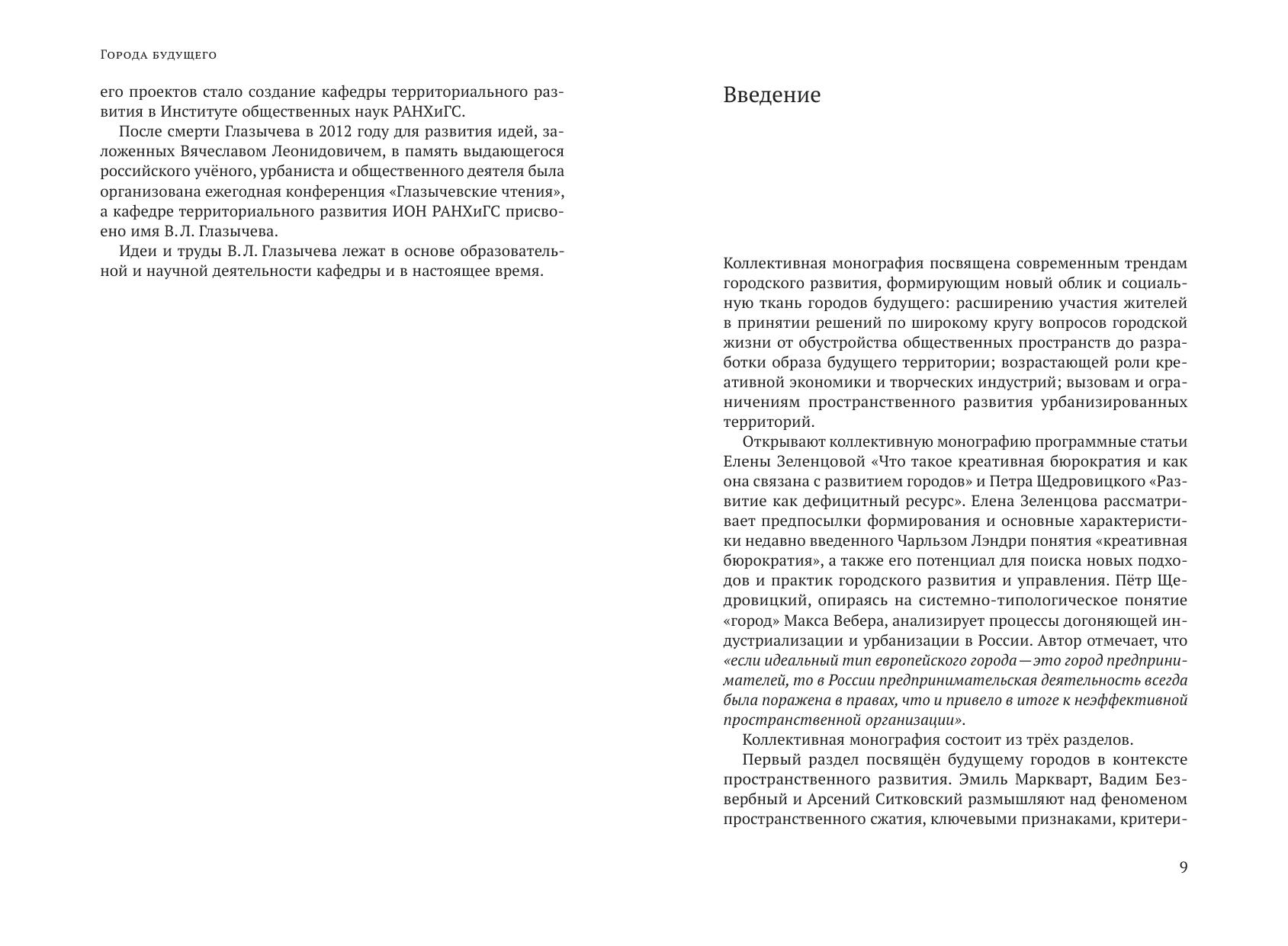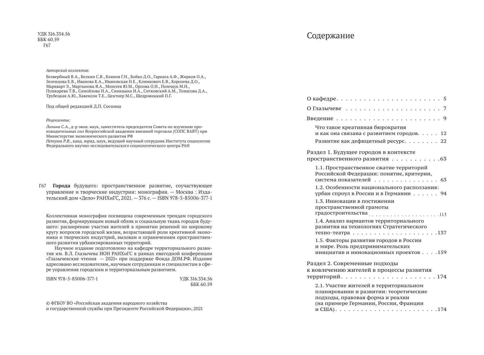 Коллективная монография посвящена современным трендам городского развития, формирующим новый облик и социальную ткань городов будущего: расширению участия жителей в принятии решений по широкому кругу вопросов городской жизни, возрастающей роли креативной экономики и творческих индустрий, вызовам и ограничениям пространственного развития урбанизированных территорий.
