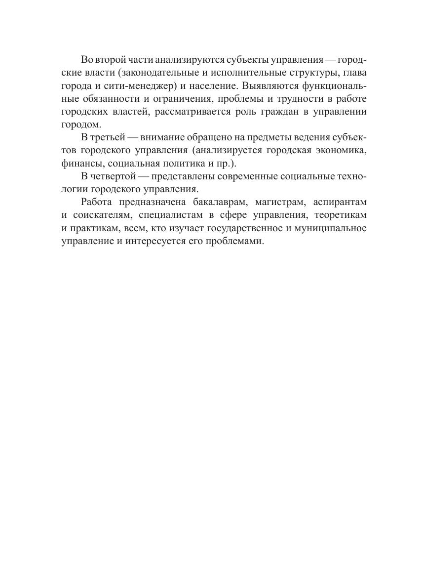 В учебном пособии анализируется город как объект управления, показаны особенности управления отдельными сферами города, представлены исторические и современные формы городского управления, рассматриваются субъекты управления и современные технологии городского управления. Для студентов, изучающих государственное и муниципальное управление, а также научных работников, аспирантов, специалистов местных органов власти.