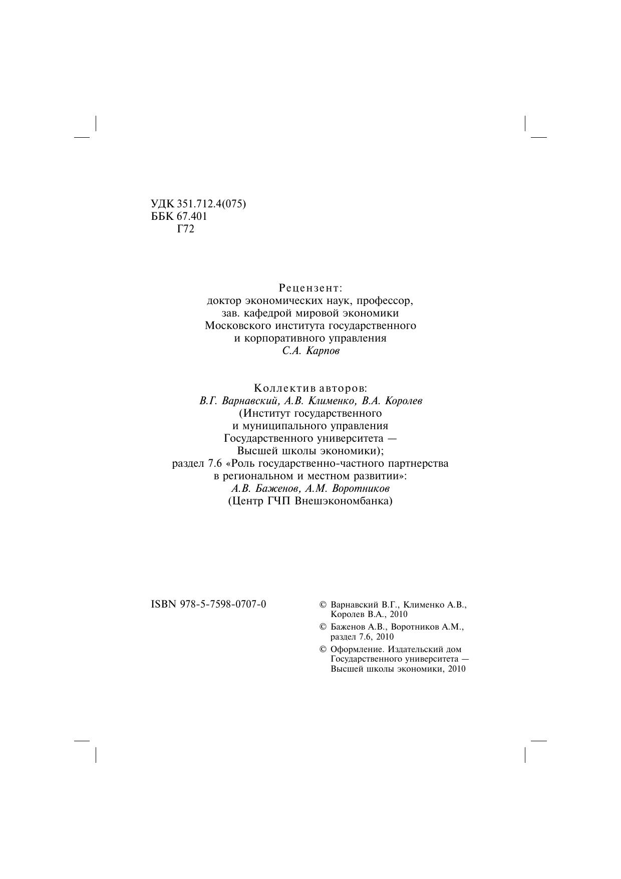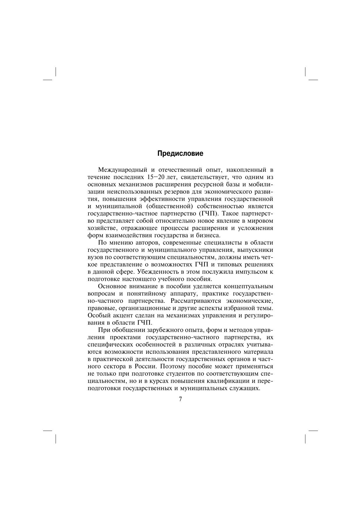 В учебном пособии на основе анализа теории, а также современной российской и мировой практики государственно-частного партнерства рассматриваются методологические и практические аспекты его становления и развития. Материал подготовлен с учетом результатов научно-исследовательских работ и образовательных проектов, выполненных Институтом государственного и муниципального управления Государственного университета — Высшей школы экономики в 2002–2009 гг. и рекомендаций Европейской экономической комиссии ООН. Для студентов и слушателей, изучающих теорию и практику государственного и муниципального управления, представителей органов исполнительной власти и органов местного самоуправления, научной общественности.