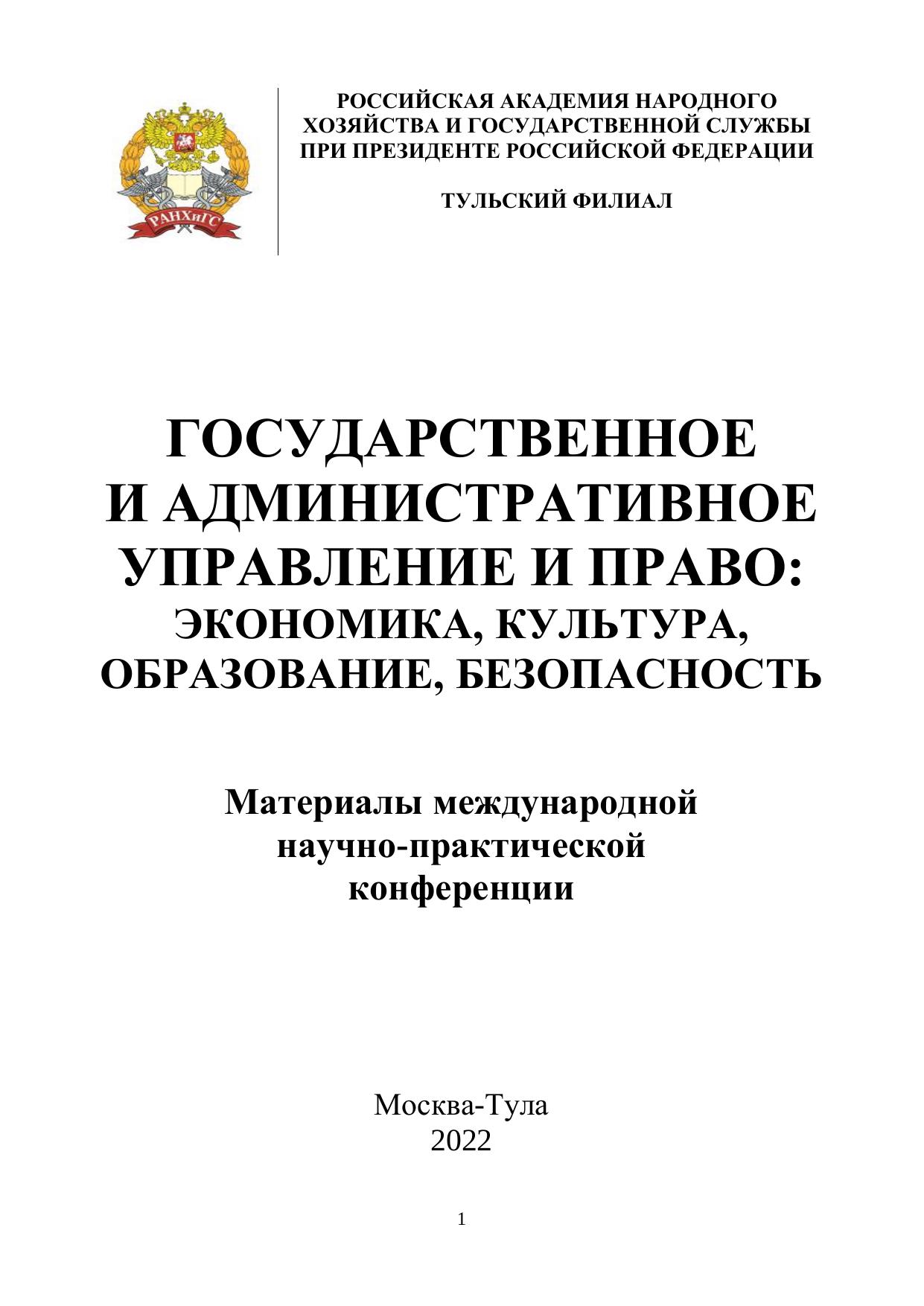 Государственное и административное управление и право: экономика, культура, образование, безопасность: Материалы международной научно-практической конференции