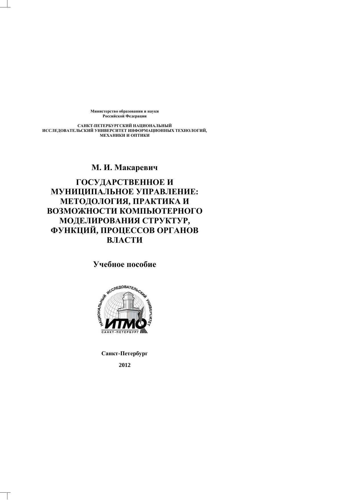 Государственное и муниципальное управление: методология, практика и возможности компьютерного моделирования структур, функций, процессов органов власти