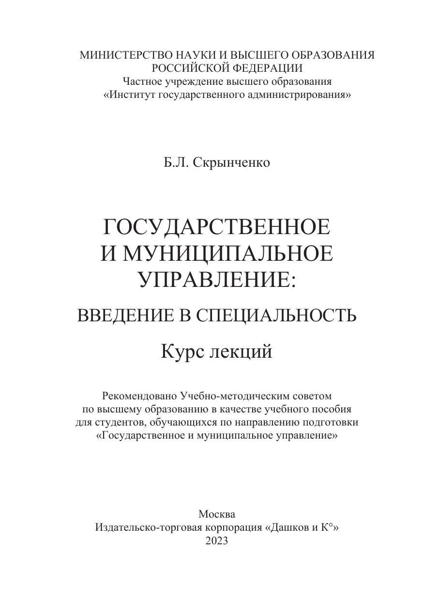 Государственное и муниципальное управление: введение в специальность: Курс лекций