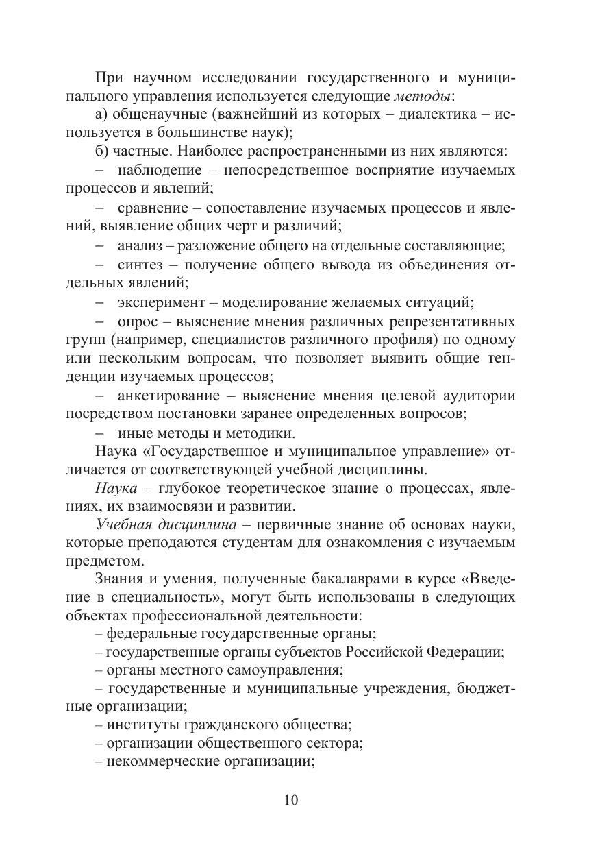 Курс лекций подготовлен с целью обеспечения дисциплины «Введение в специальность» учебными материалами. Построен в соответствии с Федеральным государственным образовательным стандартом по направлению подготовки «Государственное и муниципальное управление». Рассмотрены теоретико-методологические основы управления, механизм функционирования государственной и муниципальной власти, структура органов государственного управления и местного самоуправления, основные теории управления, ресурсные возможности и перспективы развития территориальных образований, а также проблемы государственного и муниципального управления и пути их решения. Содержит контрольные вопросы, практические и тестовые задания.