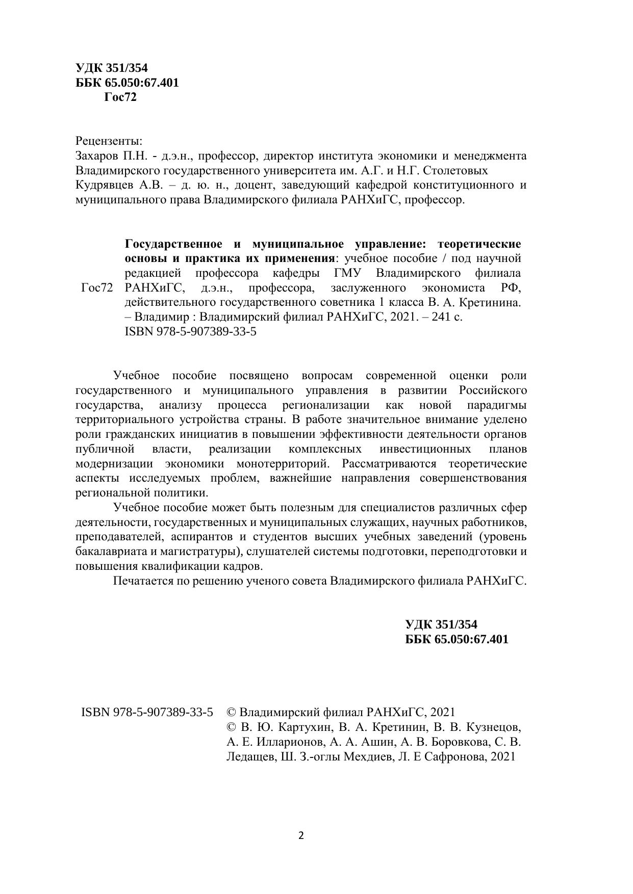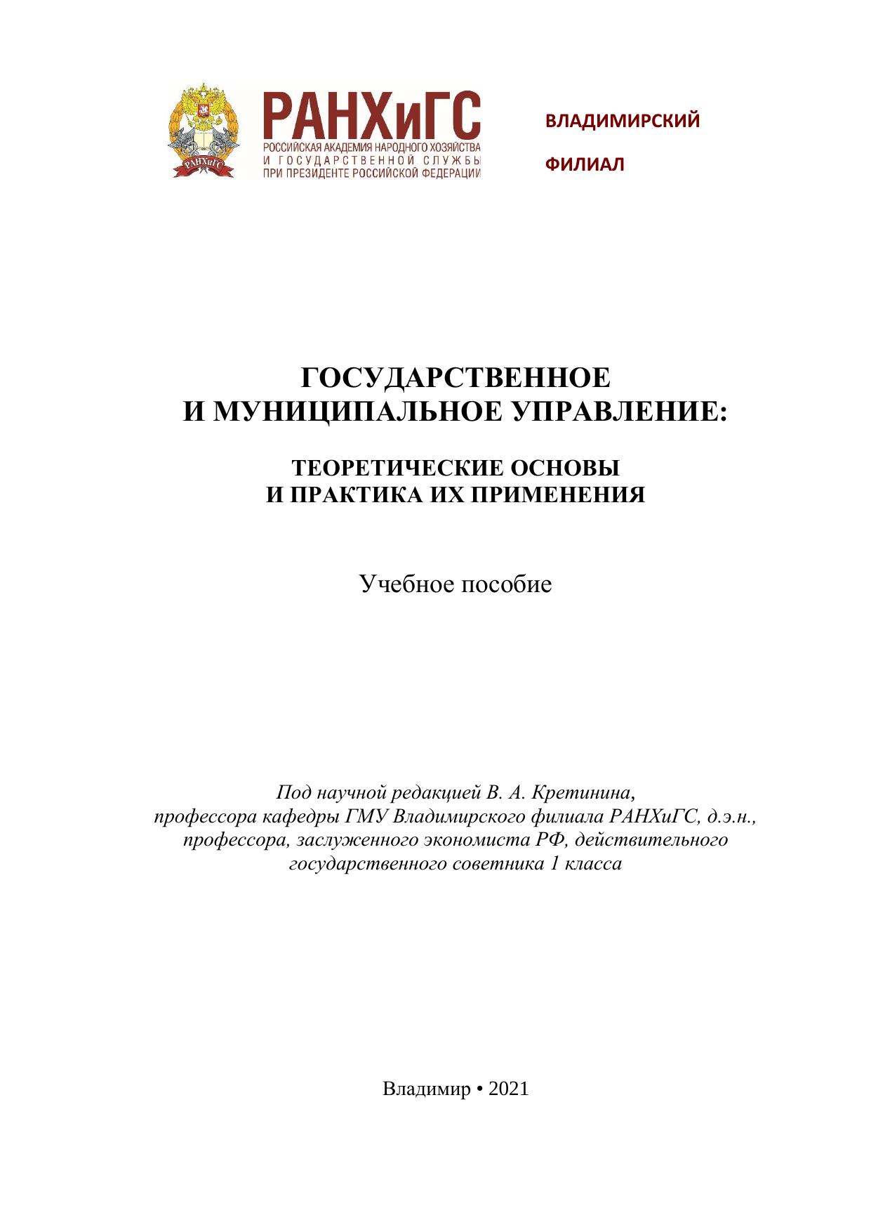 Государственное и муниципальное управление: теоретические основы и практика их применения