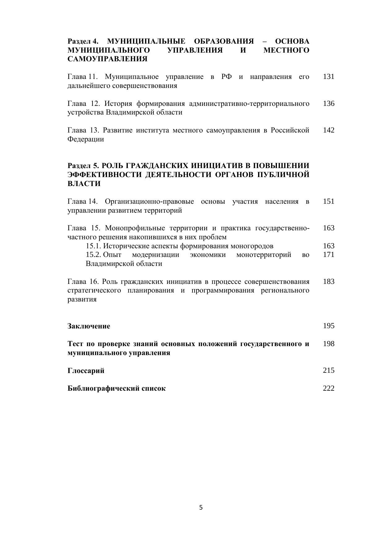 Учебное пособие посвящено вопросам современной оценки роли государственного и муниципального управления в развитии Российского государства, анализу процесса регионализации как новой парадигмы территориального устройства страны. В работе значительное внимание уделено роли гражданских инициатив в повышении эффективности деятельности органов публичной власти, реализации комплексных инвестиционных планов модернизации экономики монотерриторий. Рассматриваются теоретические аспекты исследуемых проблем, важнейшие направления совершенствования региональной политики. Учебное пособие может быть полезным для специалистов различных сфер деятельности, государственных и муниципальных служащих, научных работников, преподавателей, аспирантов и студентов высших учебных заведений (уровень бакалавриата и магистратуры), слушателей системы подготовки, переподготовки и повышения квалификации кадров. Печатается по решению ученого совета Владимирского филиала РАНХиГС.