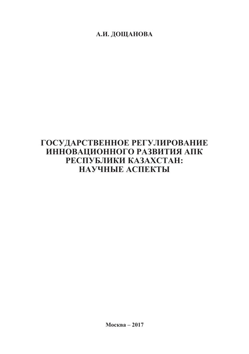 Государственное регулирование инновационного развития АПК Республики Казахстан: научные аспекты