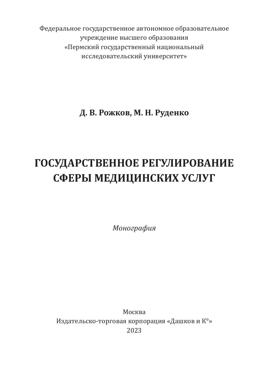 Монография посвящена вопросам совершенствования государственного регулирования сферы медицинских услуг.