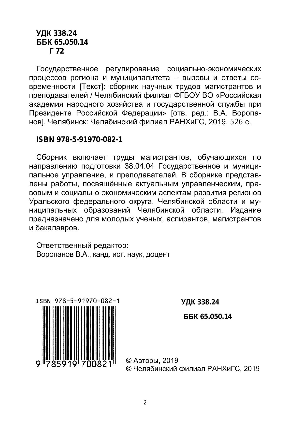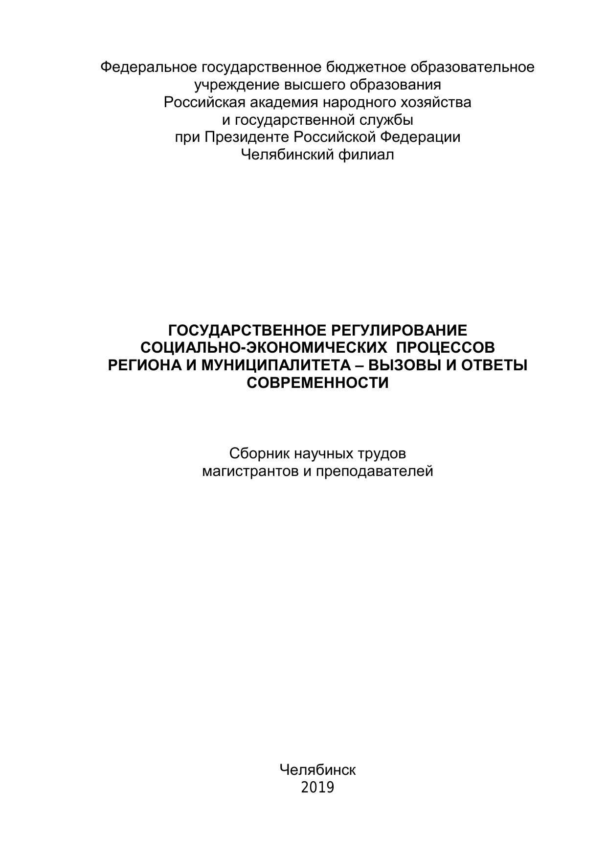 Государственное регулирование социально-экономических процессов региона и муниципалитета – вызовы и ответы современности: сборник научных трудов магистрантов и преподавателей