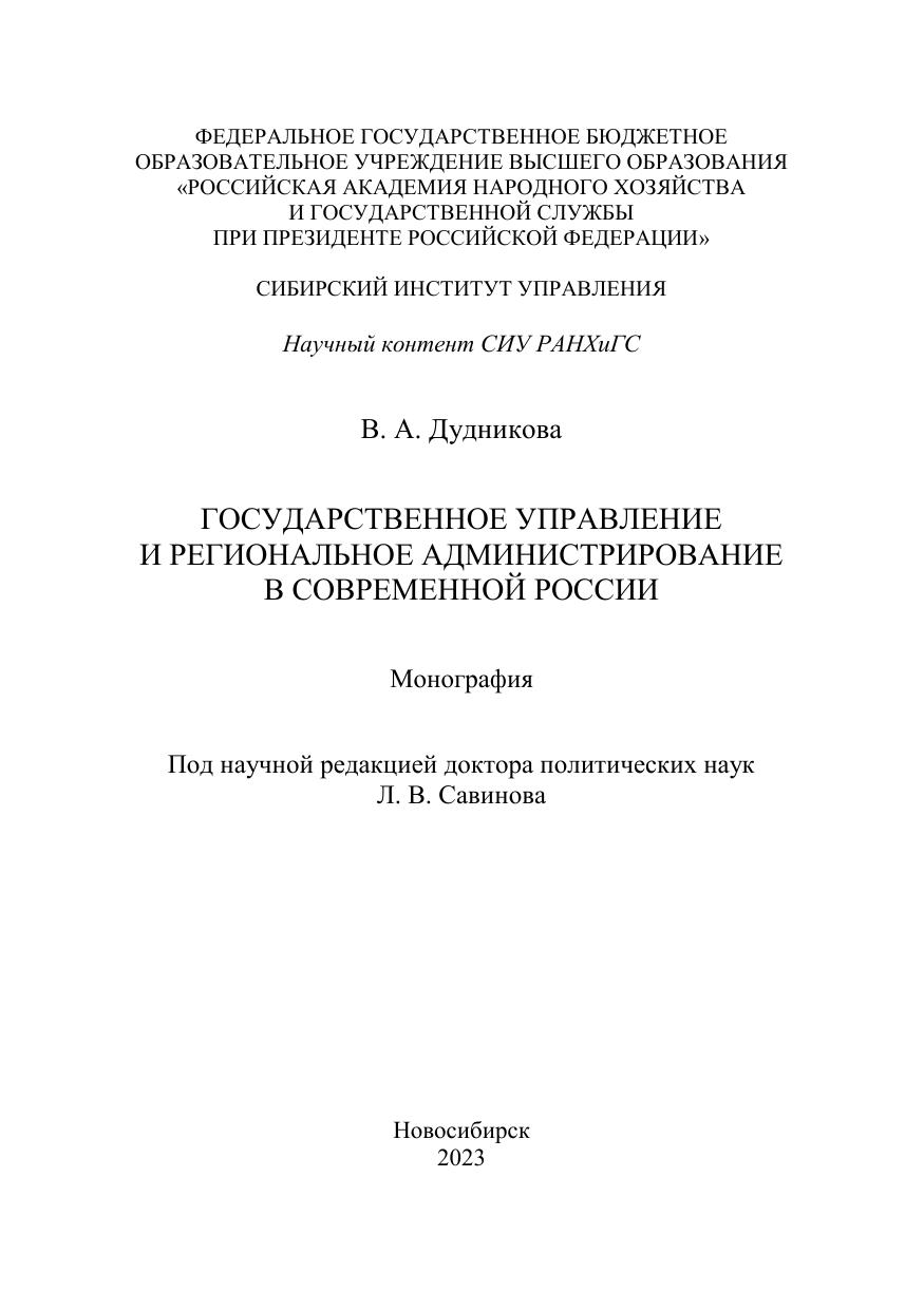 Государственное управление и региональное администрирование в современной России