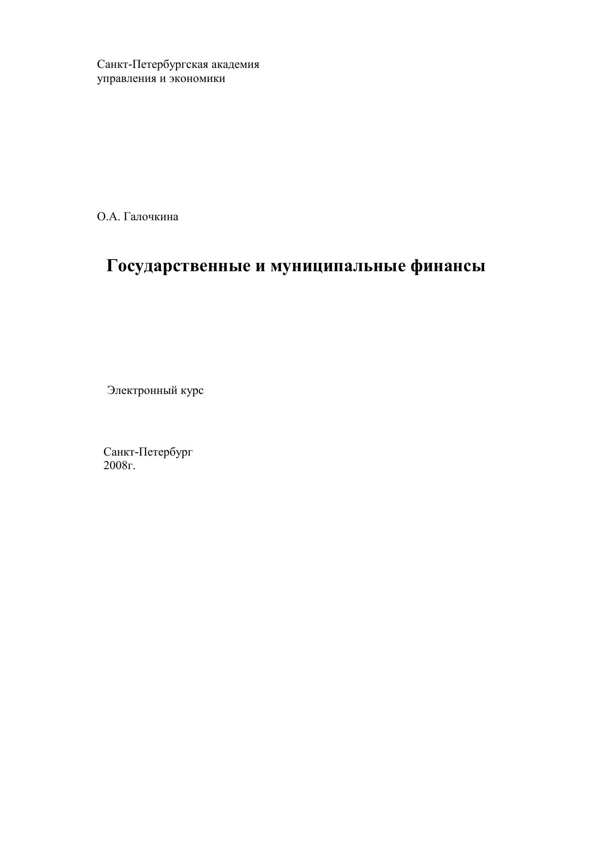 Государственные и муниципальные финансы: Электронное учебное пособие