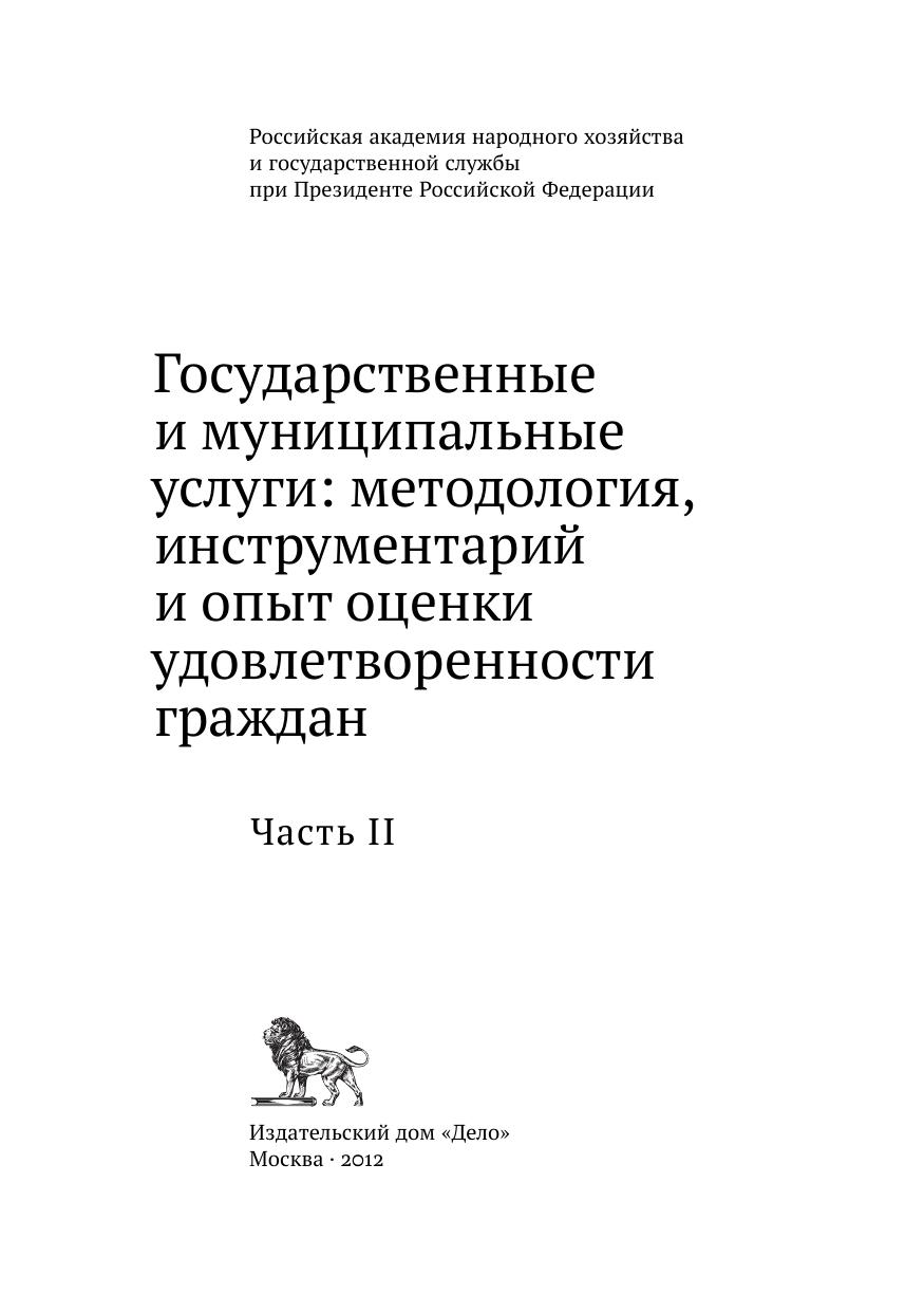 Государственные и муниципальные услуги: методология, инструментарий и опыт оценки удовлетворенности граждан. Часть II