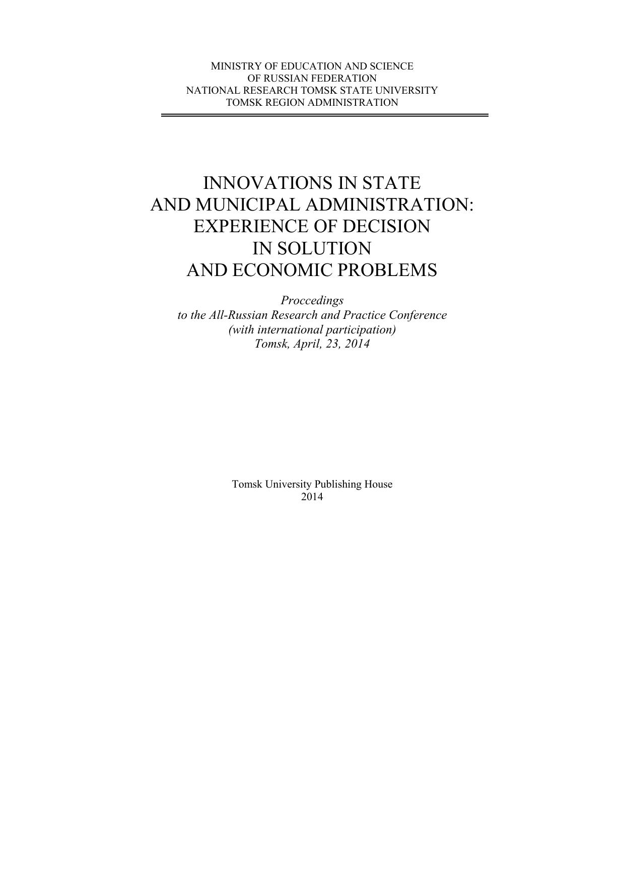 Инновации в государственном и муниципальном управлении: опыт решения социальных и экономических проблем
